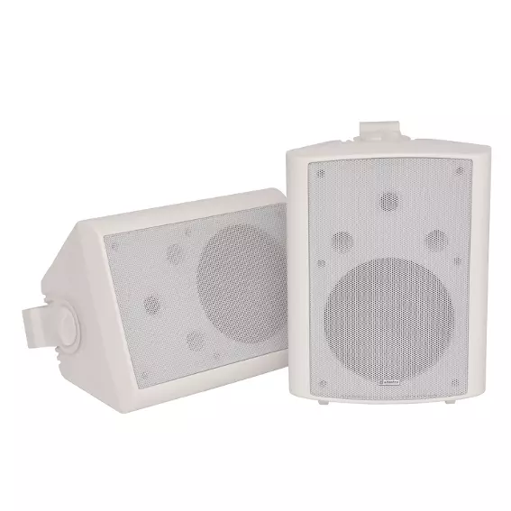 A range of compact 2-way stereo speakers, with ABS enclosures and a sturdy metal grille. Suitable for free standing or wall mounting via adjustable fixing bracket. The trapezoidal design allows for the enclosures to be mounted neatly into corners, making them ideal for Hi-Fi and surround sound applications.