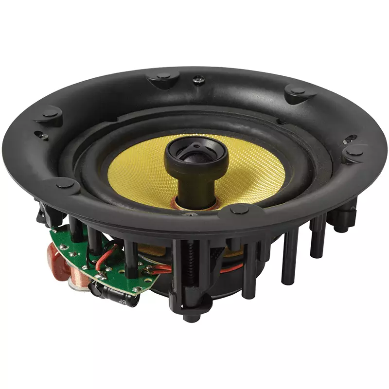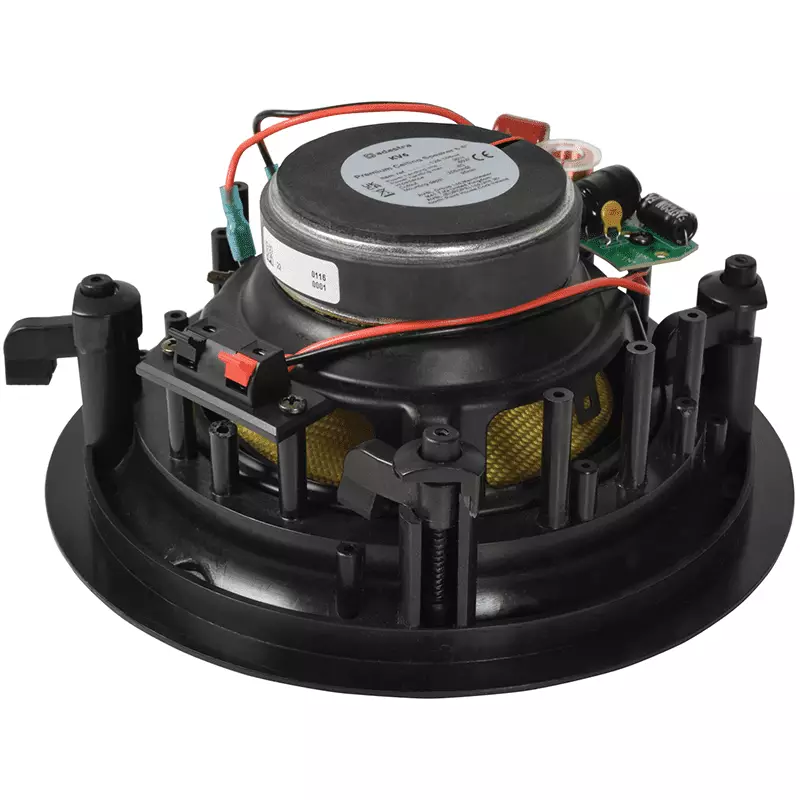 2-way ceiling speakers with flared baffle and a low profile magnetic grille. The main driver with concentric directional tweeter is operated via a rotary control with 5 x 100V volume tappings and an 8 Ohms option. Mount into suspended or false ceilings using the 4 “dog-ear” mounts to achieve a discreet, high quality sound installation.