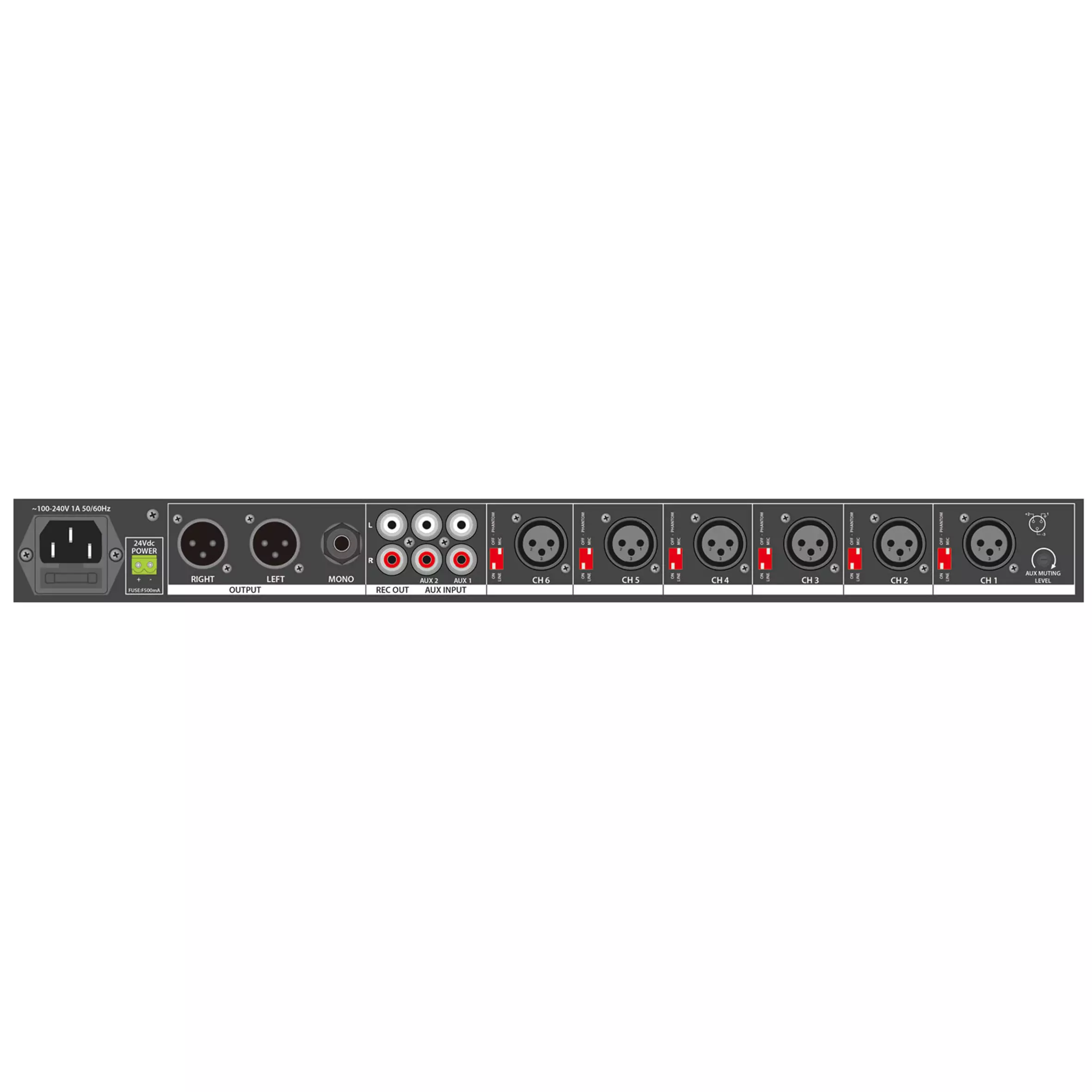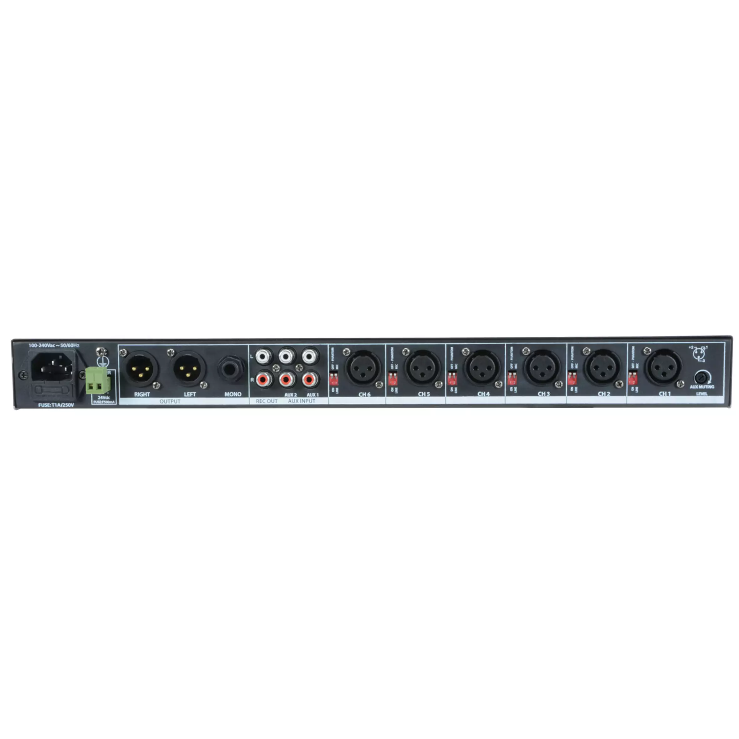 - Inputs : mic/line: 6 x balanced XLR