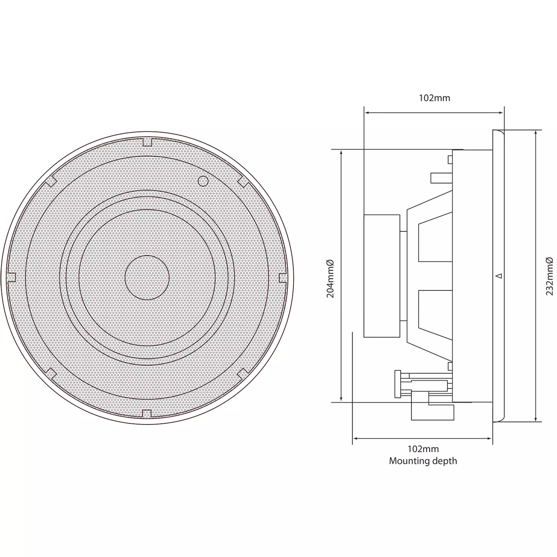 - Mounting depth: 102mm
