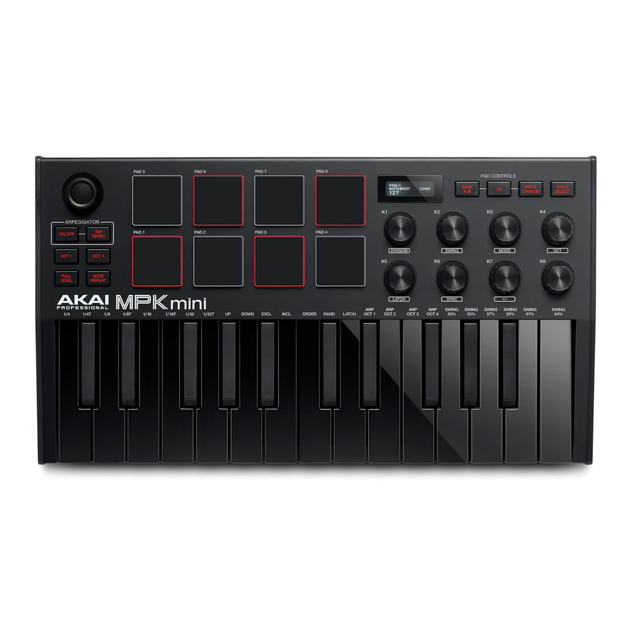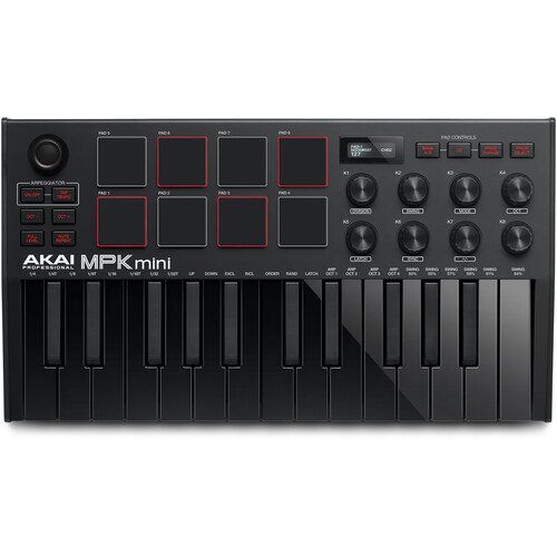 The unit continues to offer twenty-five velocity-sensitive synth-action mini keys, as well as a four-way thumbstick for pitch and modulation manipulation, and eight assignable Q-Link knobs. With an array of hardware controls, the MPK Mini allows for recording, composing, and performing, whenever and wherever inspiration strikes.