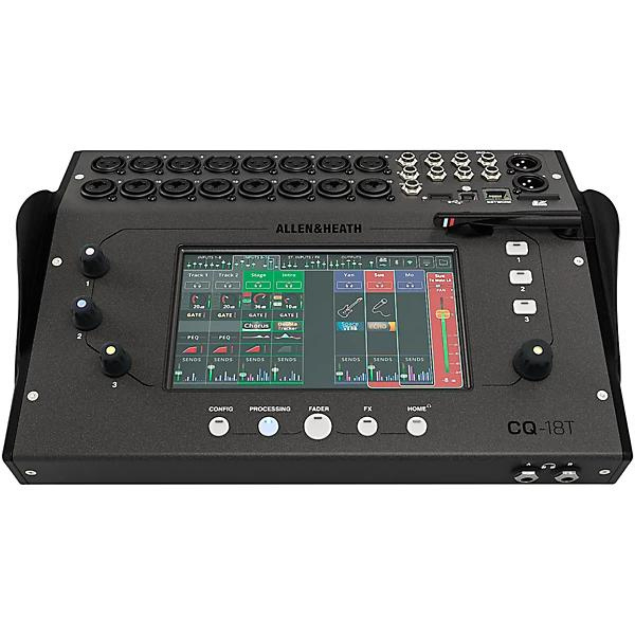 CQ-18T gives you all the tactile control you need to get around the interface quickly. A 7″ touchscreen and rotary control make it simple to set up and get mixing, and the 3 Custom Rotaries and SoftKeys allow you to access commonly used functions with just your muscle memory. The free CQ MixPad app also gives you full control of your mix from anywhere in the venue thanks to the built-in WiFi.