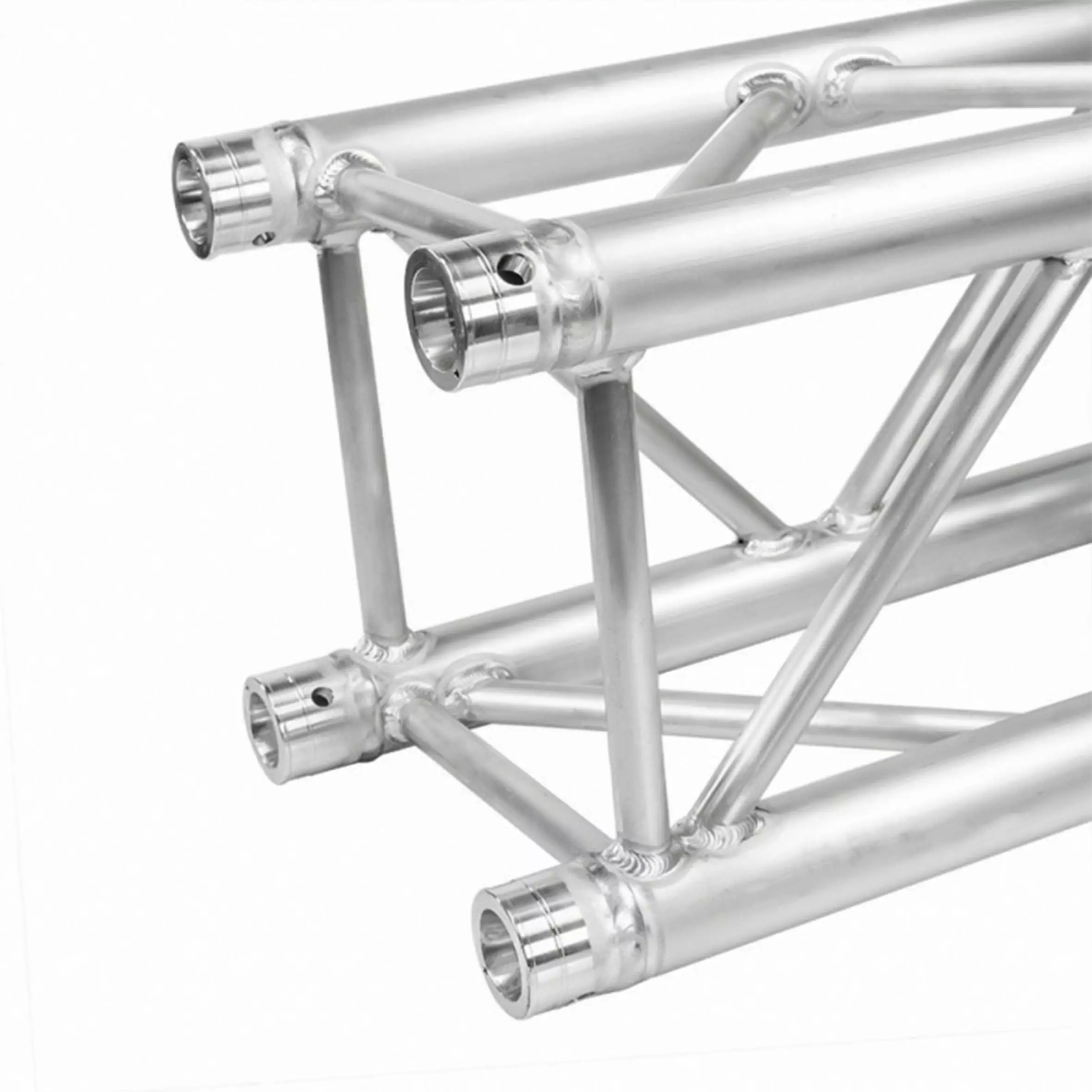 System 290A is made of main tube 50x2mm and braces 20x2mm. It has got SZ02.10 connection.Thanks to their spatial design, the aluminium trusses look attractive and are very strong. They can be arranged in different ways and are successfully used as elements of stage roofs, trade fair structures, exposition structures, big screen structures, LED display screen and projection screen support frames, lighting “gates” and sound “gates”, as well as frameworks of advertising banners or stage decorations. Each truss is of the highest quality which is confirmed by ISO DIN 4113  and TÜV certificate granted to our company. Each element is thoroughly inspected.