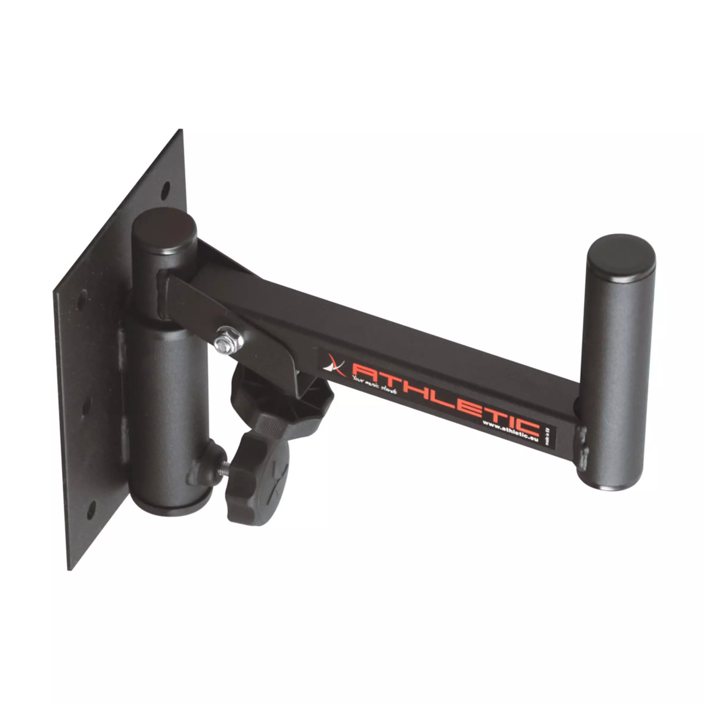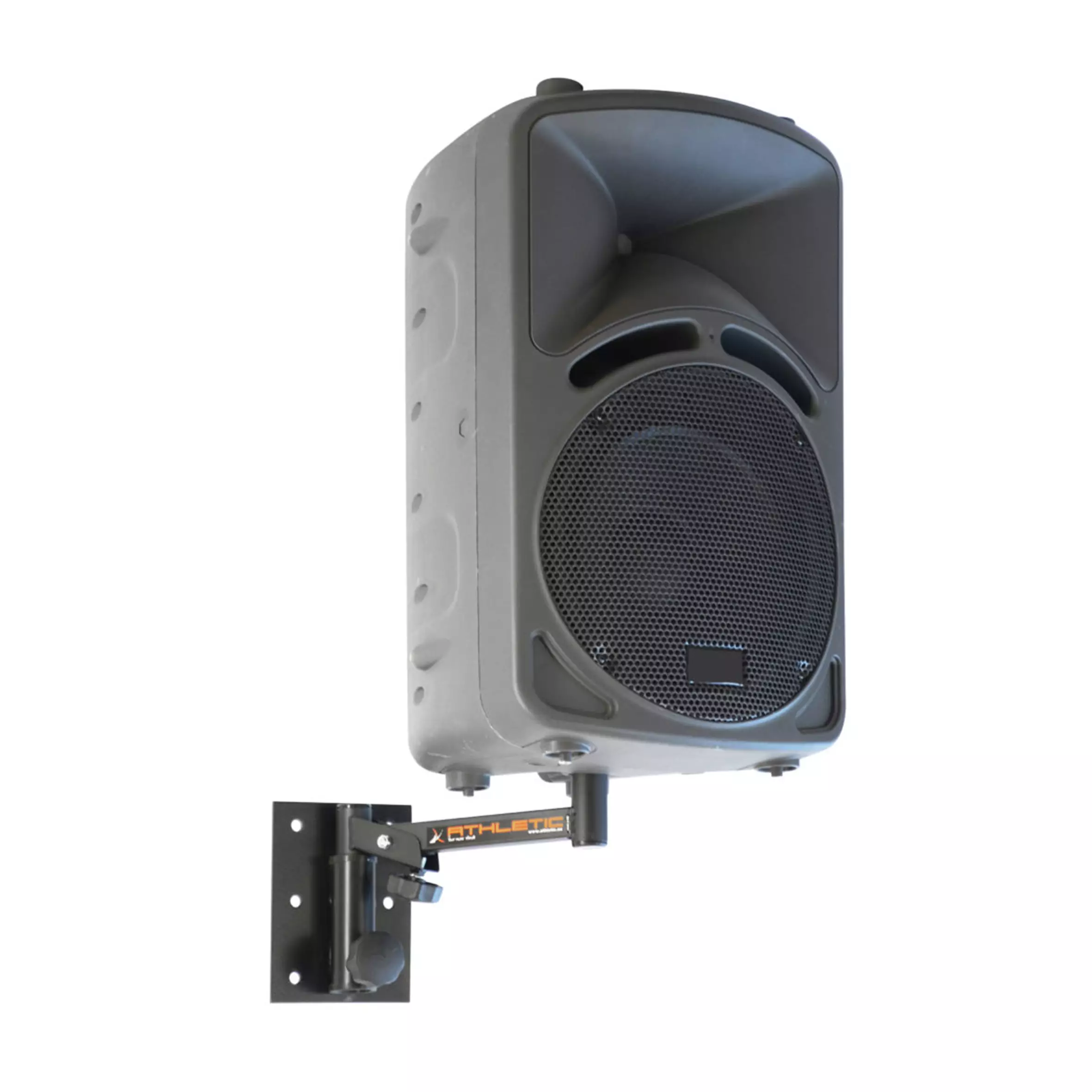A professional, wall-mounted speaker stand with horizontal and vertical adjustment.