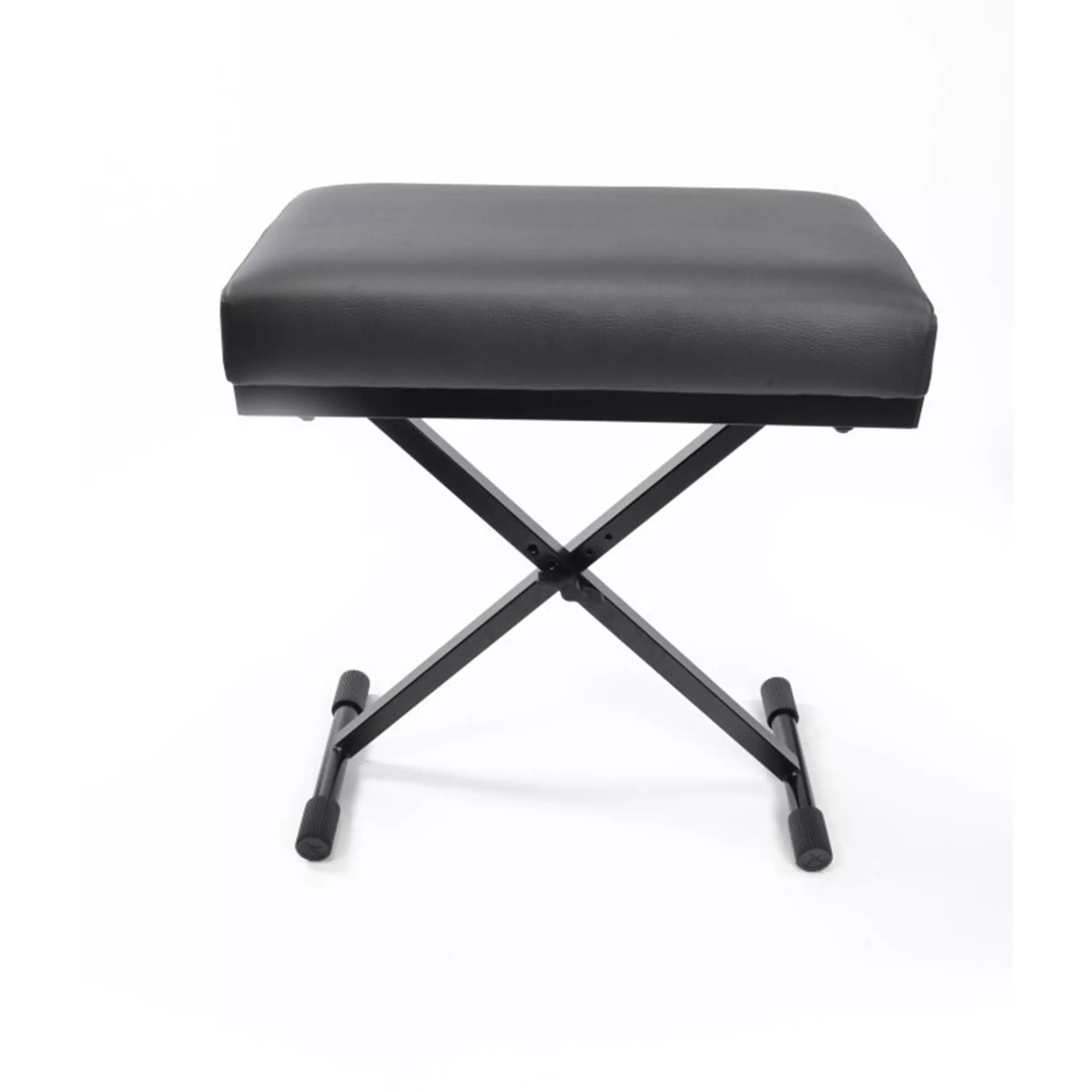DELUXE type bench with thick seat for a keyboard player. Simple and stable construction with regulated height i. Thickened seat made of ecological leather.