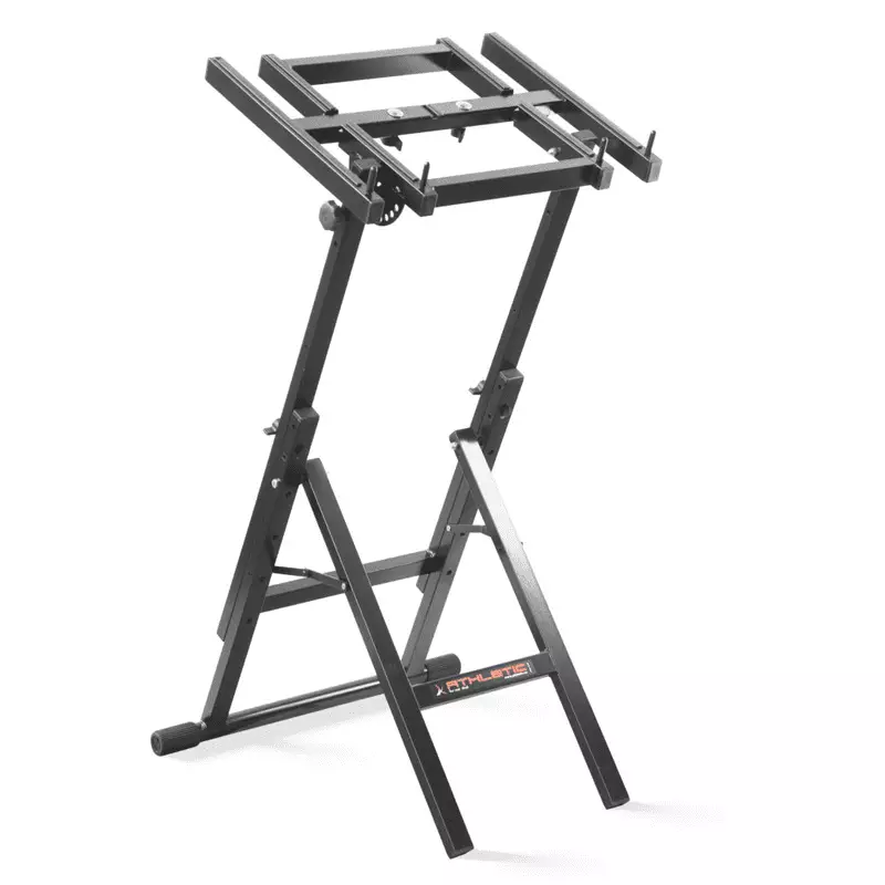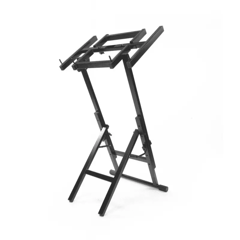 Universal stand for a laptop, mixer or projector with height adjustment and 7-step adjustment of the tilt angle and base width.