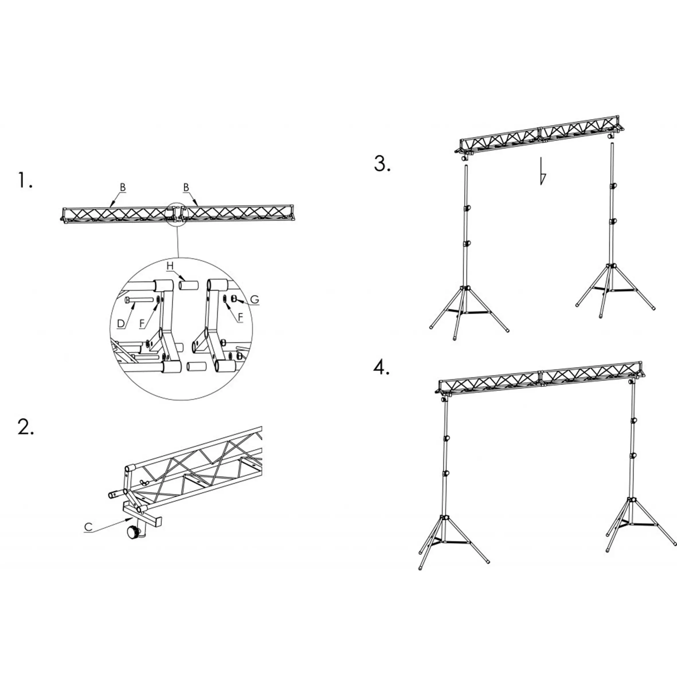 A professional lighting structure made of 2 three-arm trusses of total length of 3,000 mm mounted on supports and two LS-4 lighting stands. The set allows to mount up to 8 lighting outlets. Advantages of the set include easy and simple assembly. Thanks to the optional cases, the set can be easily transported.