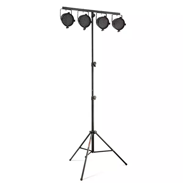 A high quality, standard lighting stand with a magnesium joint and a single leg reinforcement ensuring stability and safety with a 1000mm lighting beam allowing to mount up to 4 lighting outlets.