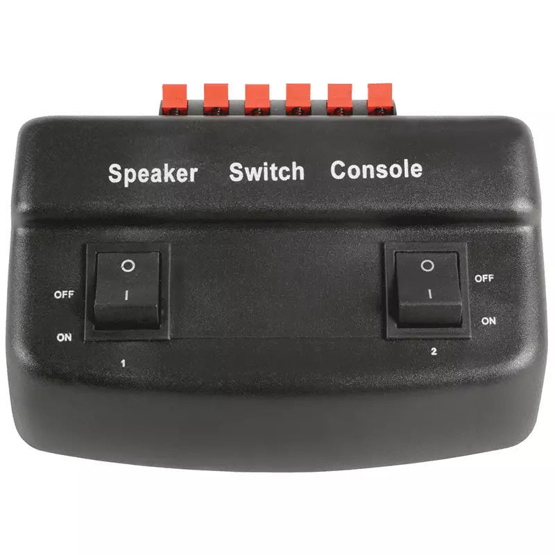This compact switch allows for two pairs of speakers to be connected to an amplifier, with the ability to select either pair or both together. This can be a quick solution for the zoning of a sound system or for adding extra speakers to a single amp.