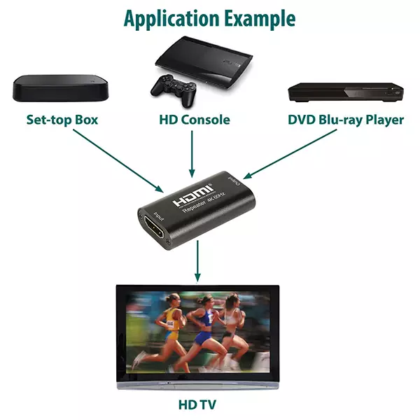 - Maintains 4K@30Hz and FHD resolution without signal loss over combined 40m cable length