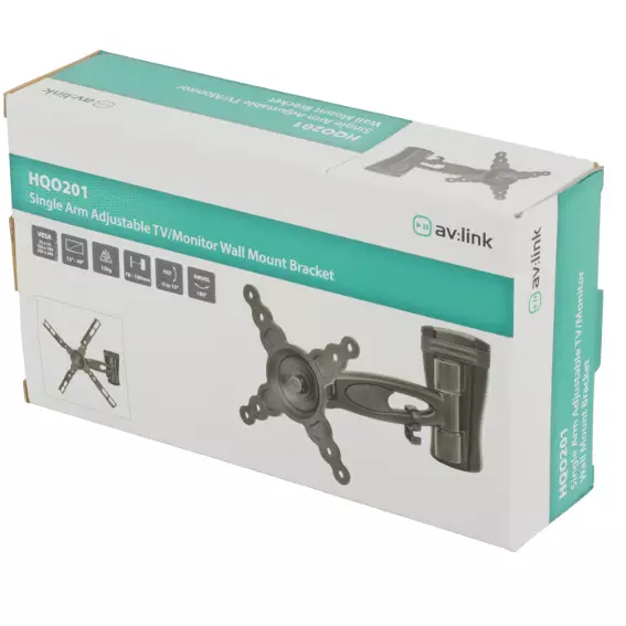 A compact, fully adjustable steel wall bracket suitable for mounting screens from 13″ up to 40″. Bracket detatches from wall mount for easy installation.
