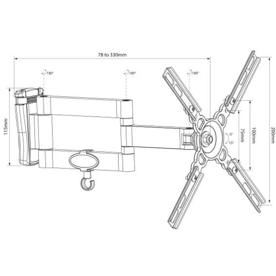 - Swivels 180° from wall connection point and 180° from arm joint