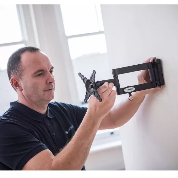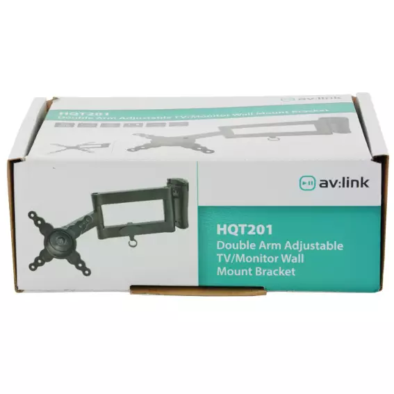 A compact, fully adjustable, double arm steel wall bracket suitable for mounting screens from 13″ up to 40″. Bracket detaches from wall mount for easy installation.