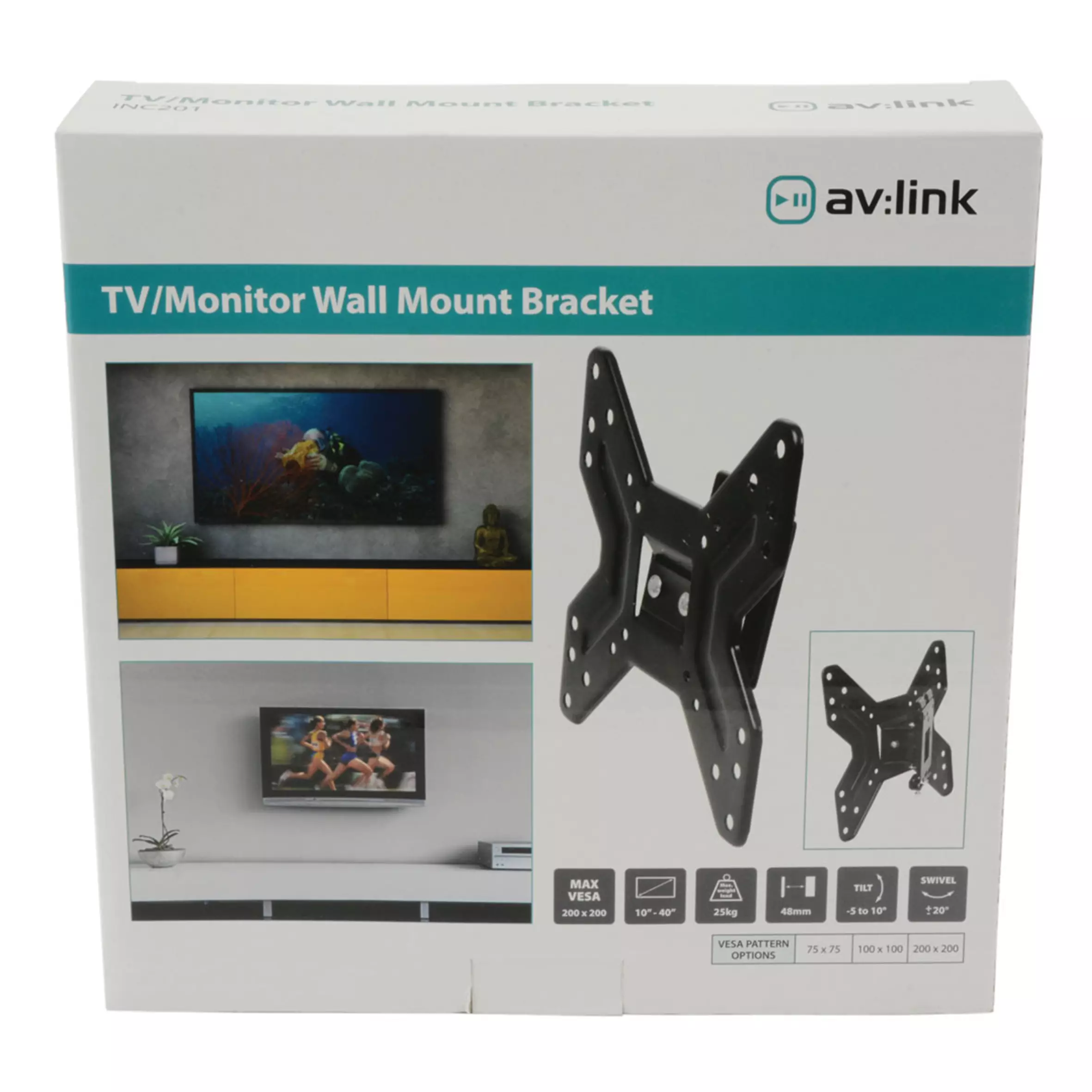 An adjustable rolled steel wall bracket suitable for mounting VESA compatible screens from 10″ up to 40″