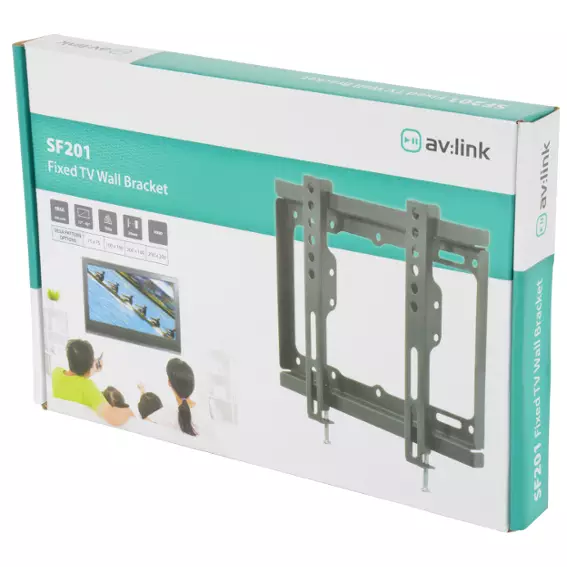 Easy to install, low profile fixed wall bracket to mount and support a TV screen.