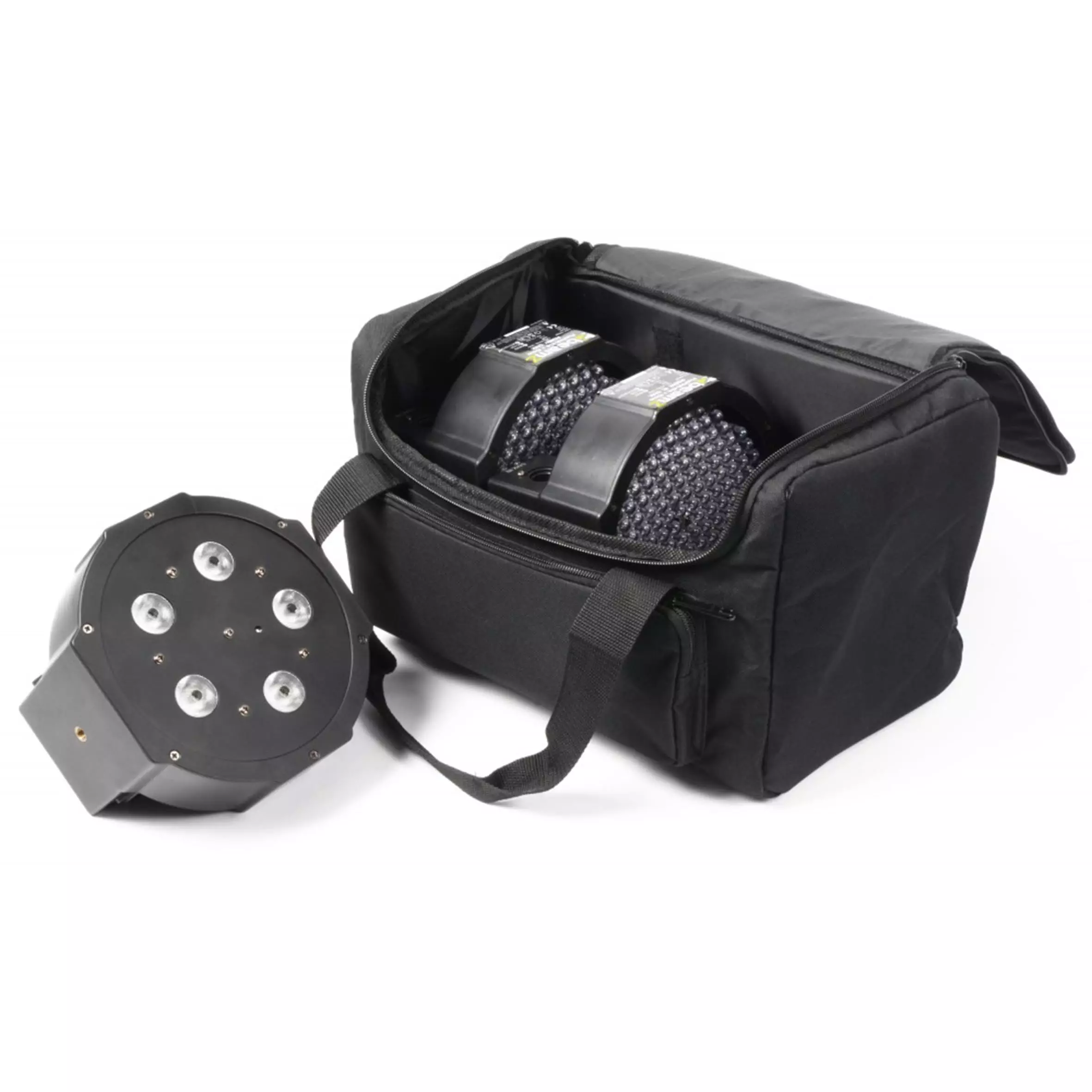 Newly designed padded soft cases to protect and extend the life of mobile lighting fixtures. It’s wide opening allows for a variety of fixtures to fit inside and gear to be removed quickly and easily. It fits other products and accessories as well. Suitable for mobile DJs, Karaoke rigs and working bands.