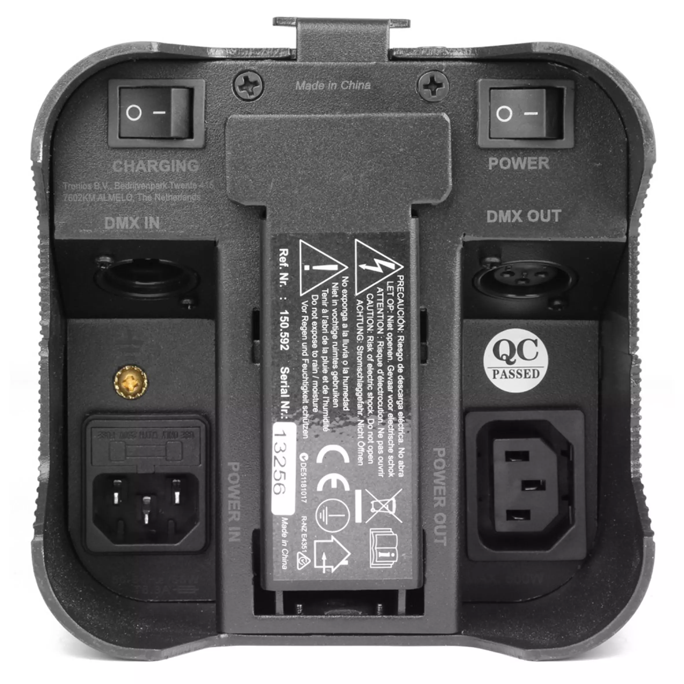 The BBP96 is a battery operated par ideal for use as an uplighter. The BBP96 comes fitted with a 10Ah battery which will last over 16 hours when fully charged. The adjustable foot can be fixed in different angles for angular placement of the par.