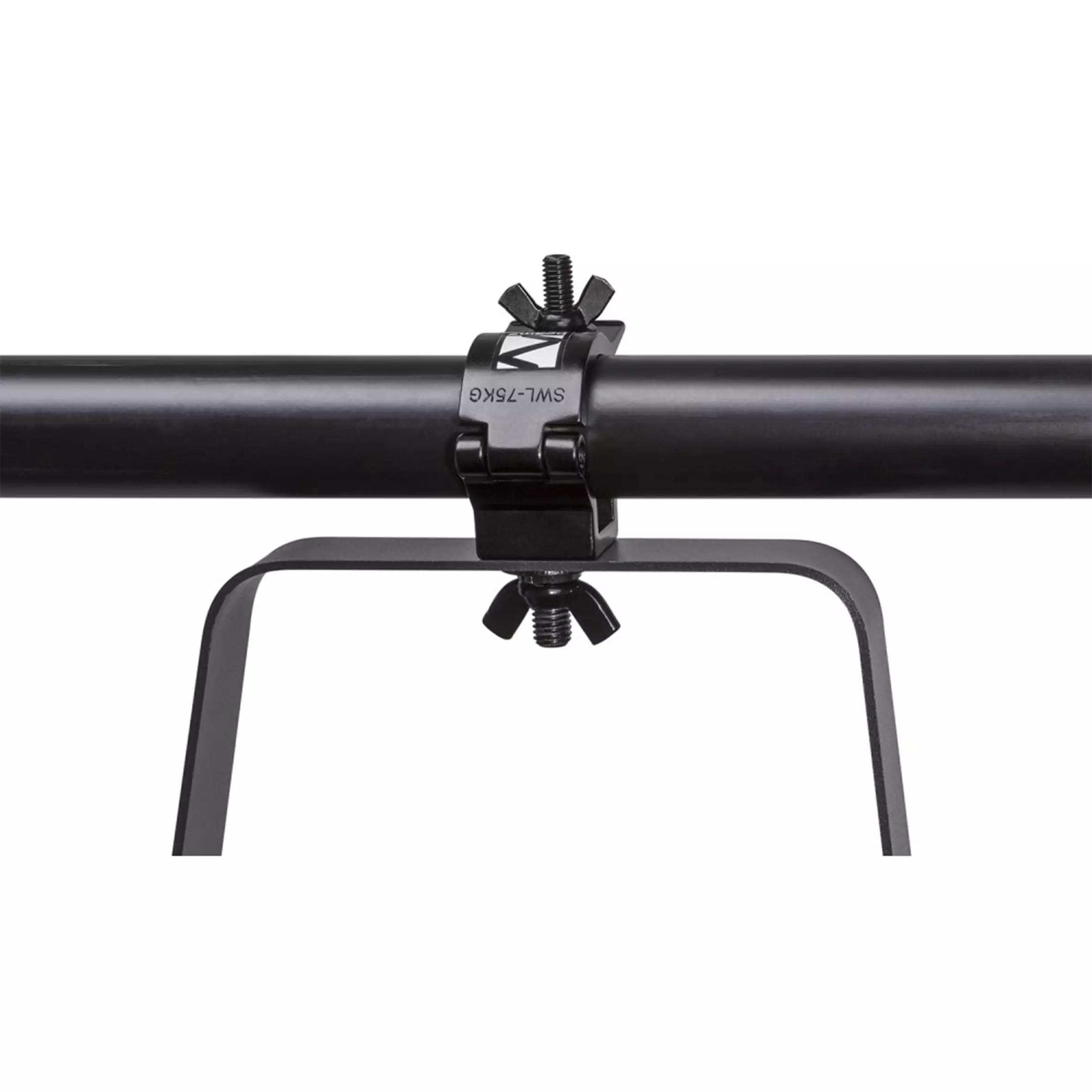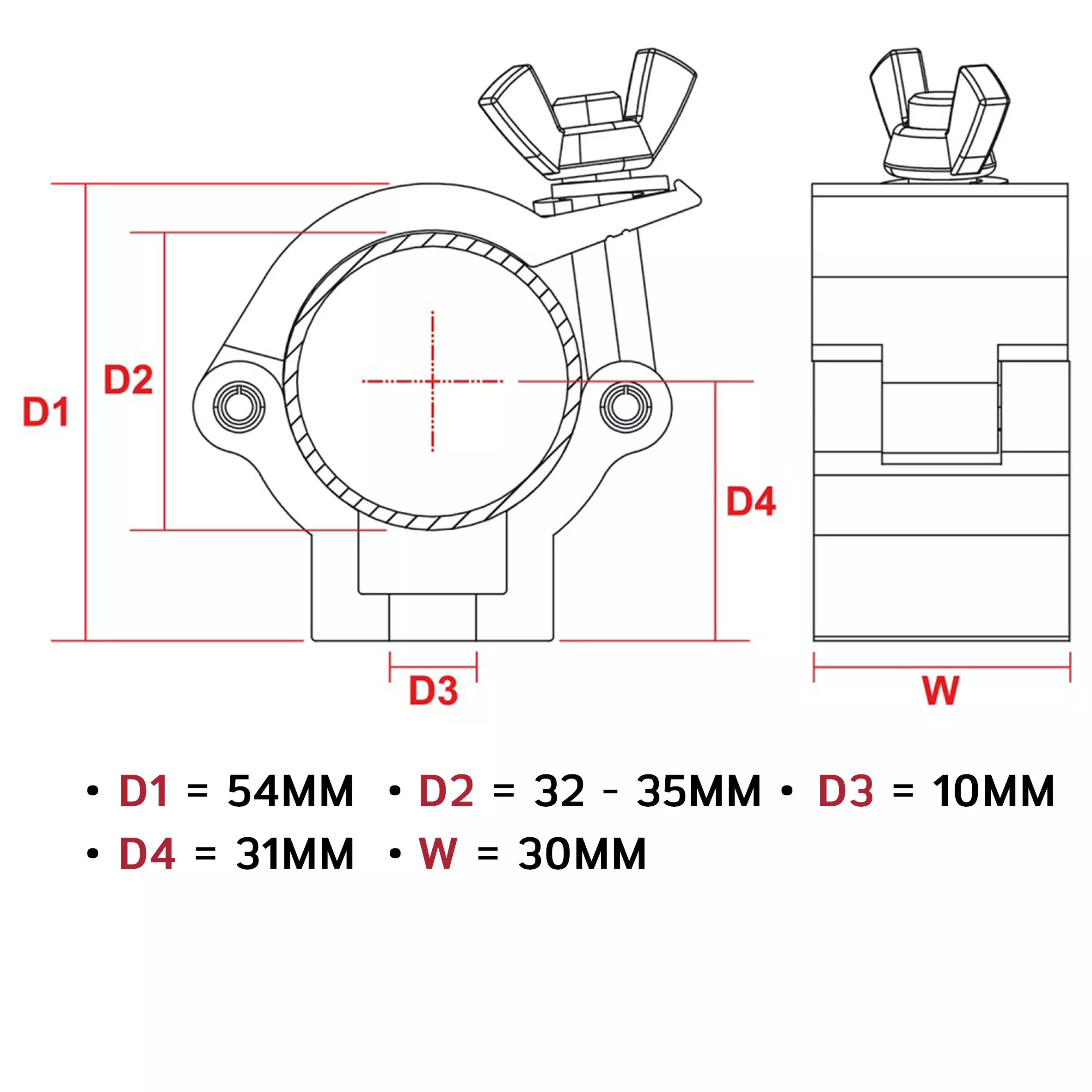 Heavy duty universal compact aluminium slimline half coupler for pipe and truss mounting fixtures. High-strength aluminum construction.