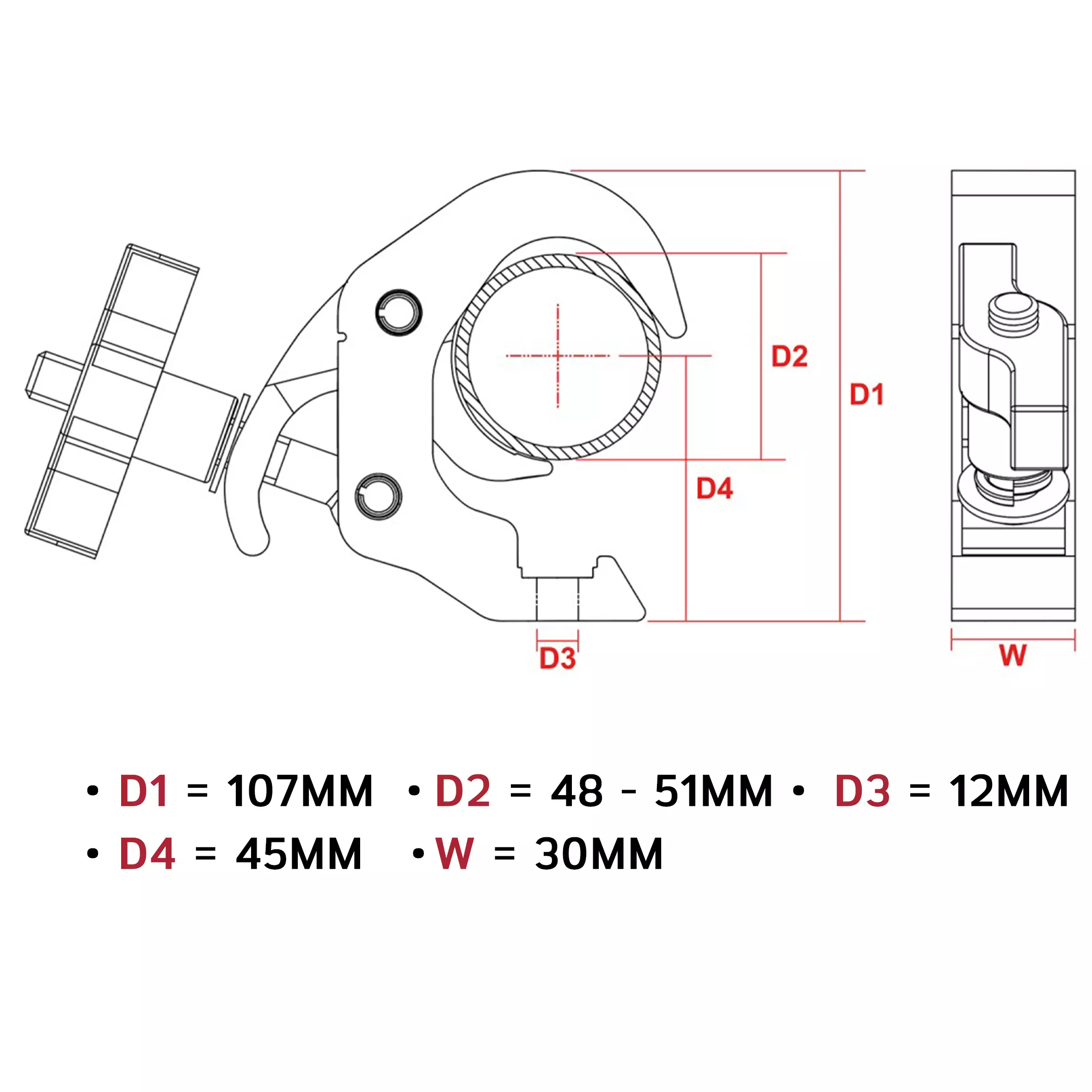 This Quick Trigger clamp is constructed from die casting aluminium and suitable for pipe and truss mounting fixtures. Featuring a jaw opening for a wider range of different tube systems. The handle of the Quick Trigger clamp is situated in the easily accessible horizontal position, leaving user to fasten the coupler without across the truss brace. Ergonomic big handle protects user’s palm from the obstructive bolt.