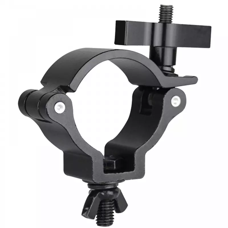 Heavy duty universal compact aluminium slimline half coupler for pipe and truss mounting fixtures. High-strength aluminum construction.