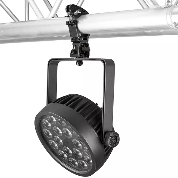 Universal compact aluminium slimline half coupler for pipe and truss mounting fixtures. For easy tilting of the mounting system to transport the light effect in a flight case. High-strength aluminum construction.