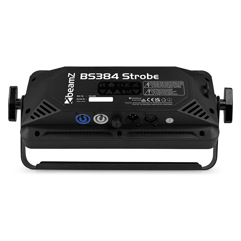 The BS384 is a multi-use fixture and is specially designed to be used as a strobe, thanks to the 384 SMD LEDs. The LED panel is divided in different sections and can flash in any colour you desire thanks to its RGB mixing system. This fixture is also equipped with a strip of 128 white SMD LEDs in the centre of the fixture, controllable in different sections to create the traditional look of a strobe. The BS384 makes it possible to create unique colourful effects and control is easy via DMX or in stand-alone mode with automatic function. Suitable for all kind of shows and events.