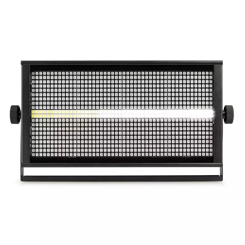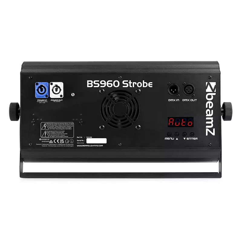 The BS960 is a powerful multi-use fixture and is specially designed to be used as a strobe, blinder or wash, thanks to the 960 SMD LEDs. The LED panel is divided in different sections and can flash in any colour you desire thanks to its RGB mixing system. This fixture is also equipped with a strip of 96 white SMD LEDs in the centre of the fixture, controllable in different sections to create the traditional look of a strobe.