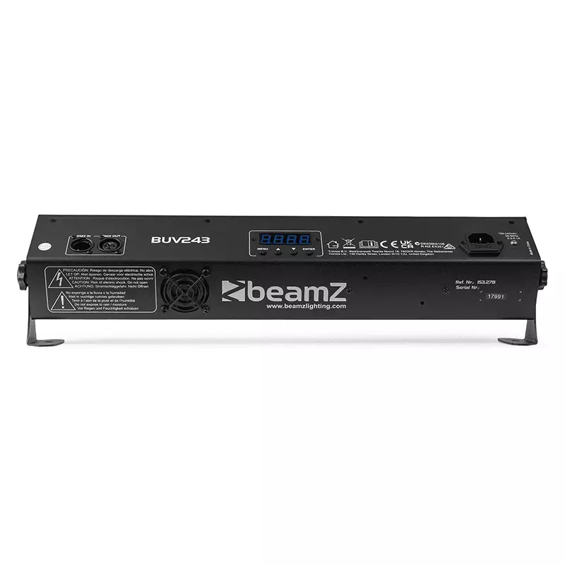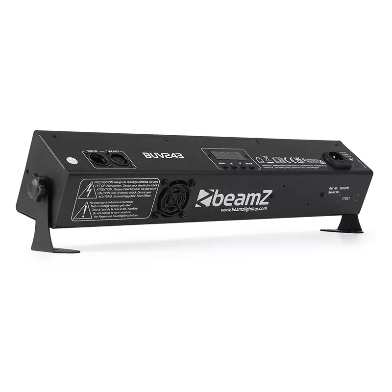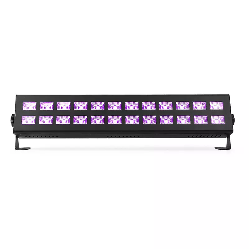 The BUV243 is a strong and powerful LED Bar fitted with high output ultraviolet LEDs. These 24 ultraviolet 3W LEDs will make objects and people “glow in the dark”. The complete DMX integration, Sound-to-Light functionality via an integrated microphone as well as a Master/Slave mode will meet all your needs! Suitable for all kinds of shows and events.