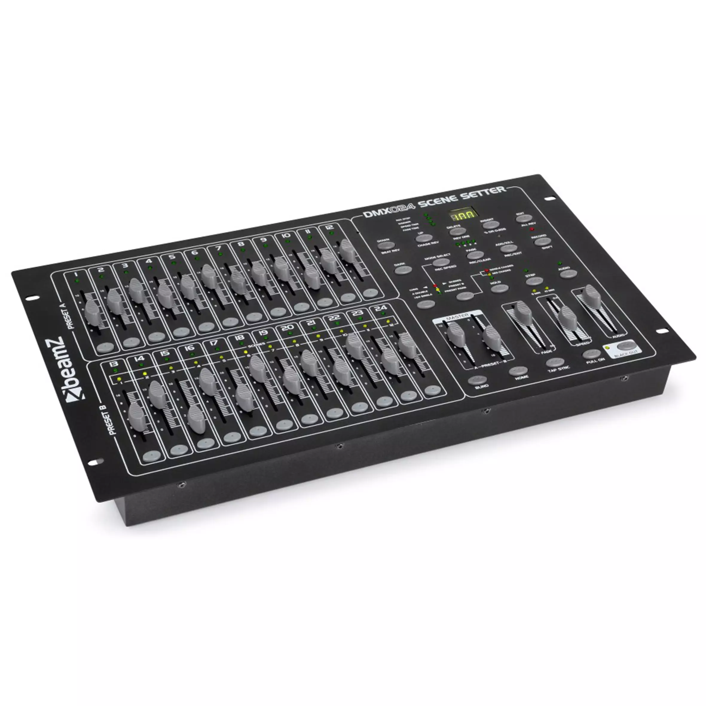 - 24 DMX channels with individual flash buttons/faders