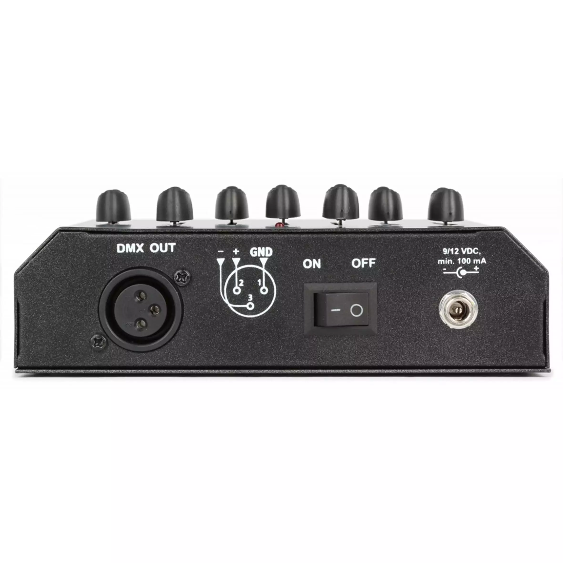 A lighting console with six individual channels with faders controlling fixtures via DMX. Suitable for decorative lighting, zone lighting and using the master fader to dim the light in order to create a cozy atmosphere in occasions. Lightweight for easy use anywhere.
