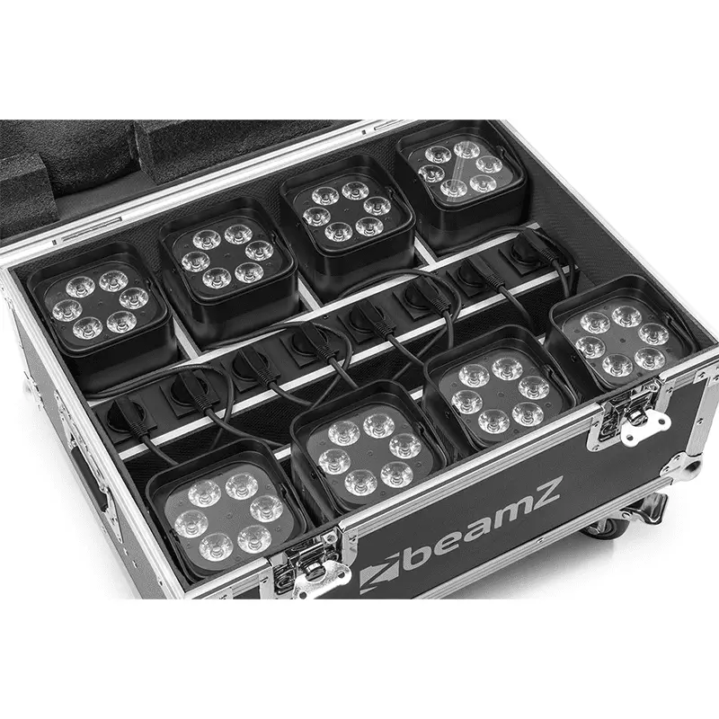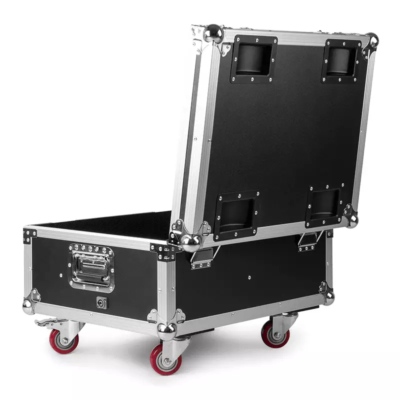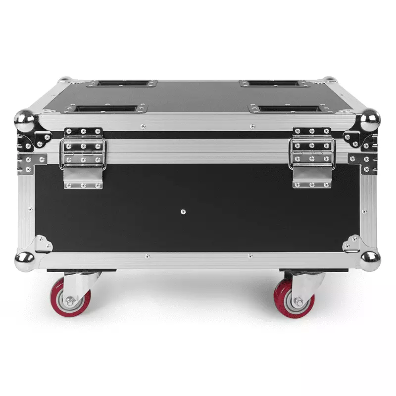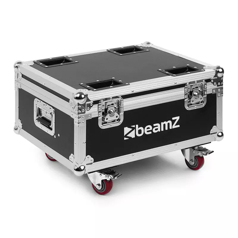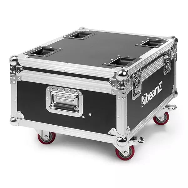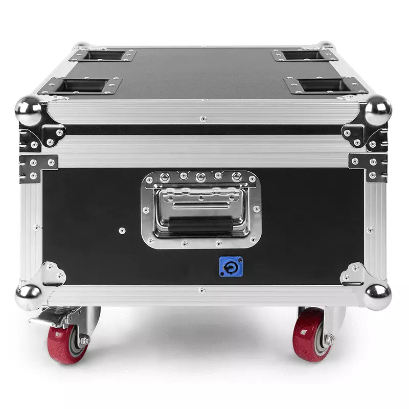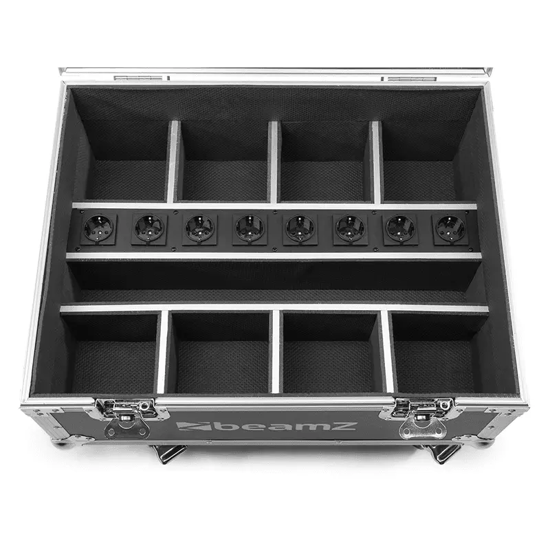 The BeamZ FCC9 Charging Flightcase is the perfect solution for safely transporting and charging BBP9 series wireless battery uplight fixtures. This durable, rolling road case with easily handles is the perfect solution for mobile use. When the show is over, simply connect the fixtures to the internal charging module and use the external plug to connect directly into standard wall voltage. The next day, your fixtures are fully charged and ready to go again. Each case holds up to 8 fixtures with enough space for all power cables.