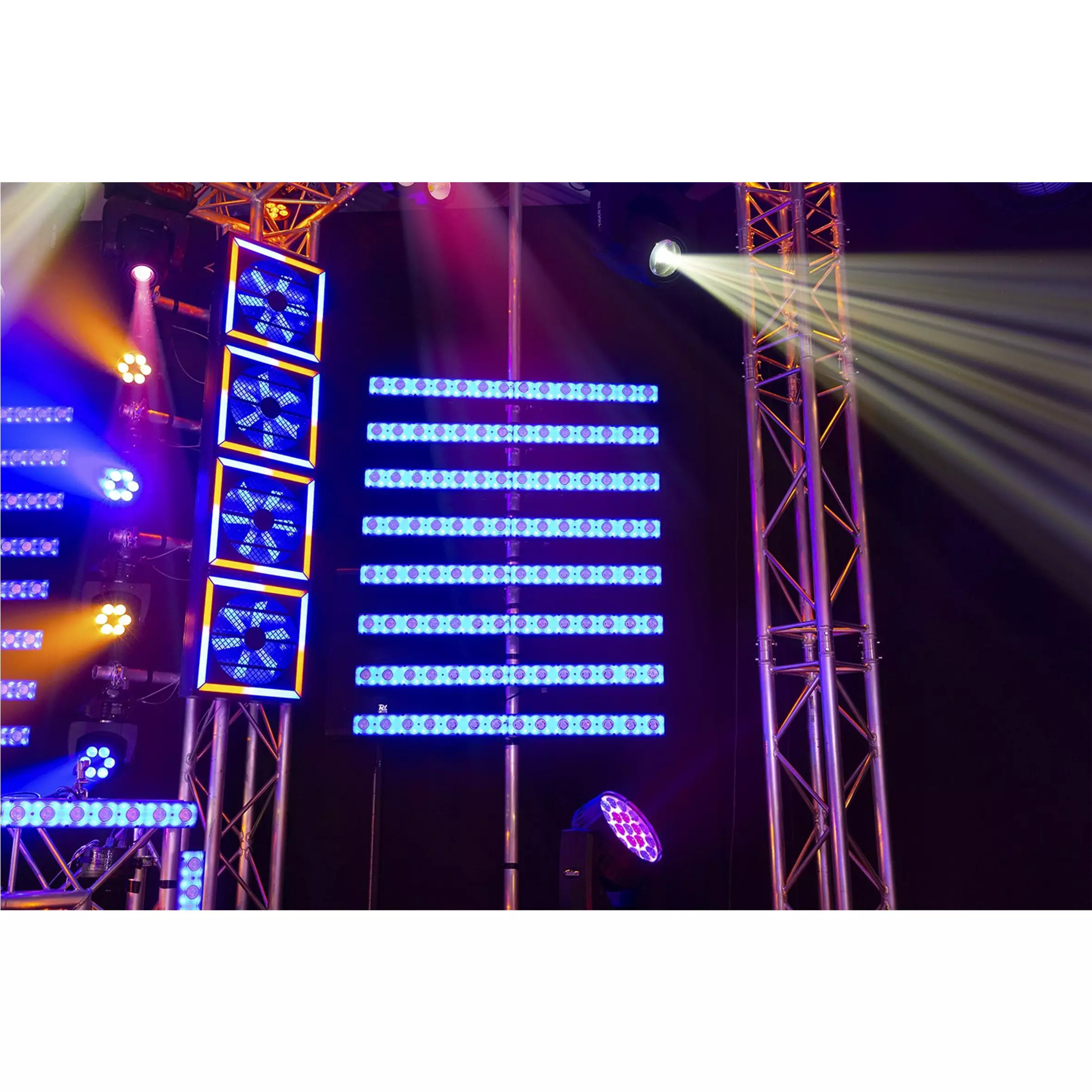 The LCB-14 is a hybrid LED bar equipped with 14x 3W Warm White LEDs and 56x SMD RGB LEDs for spectacular backlight effect. The LEDs can be programmed in single pixels for stunning chase effects. While using the fixture in stand-alone mode there are pre-programmed shows that you can run automatically or sound activated. It’s also possible to create your own mixture of colours in RGB mode (for background light). The extra power connector output enables you to simply link the power of multiple units together into a single socket.
