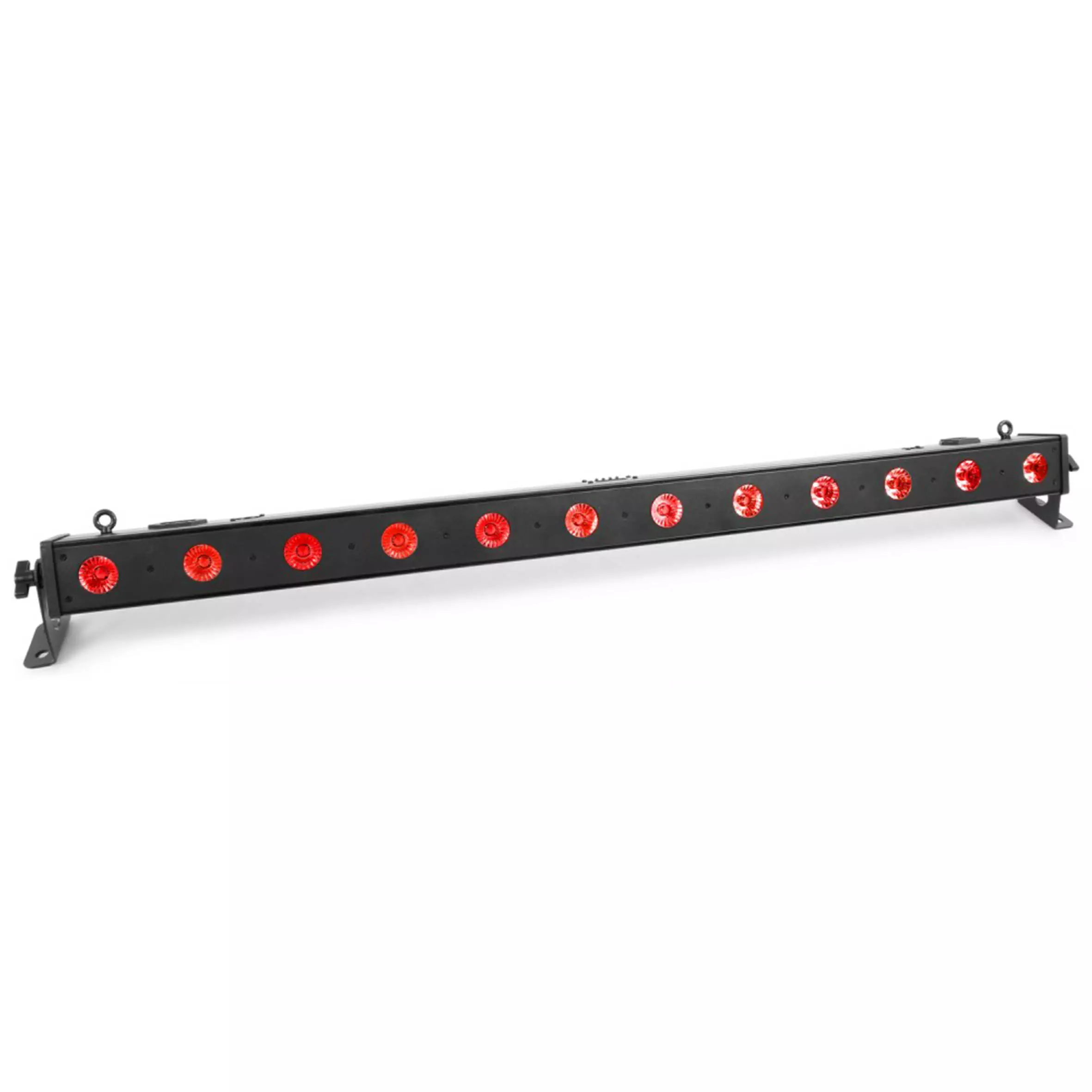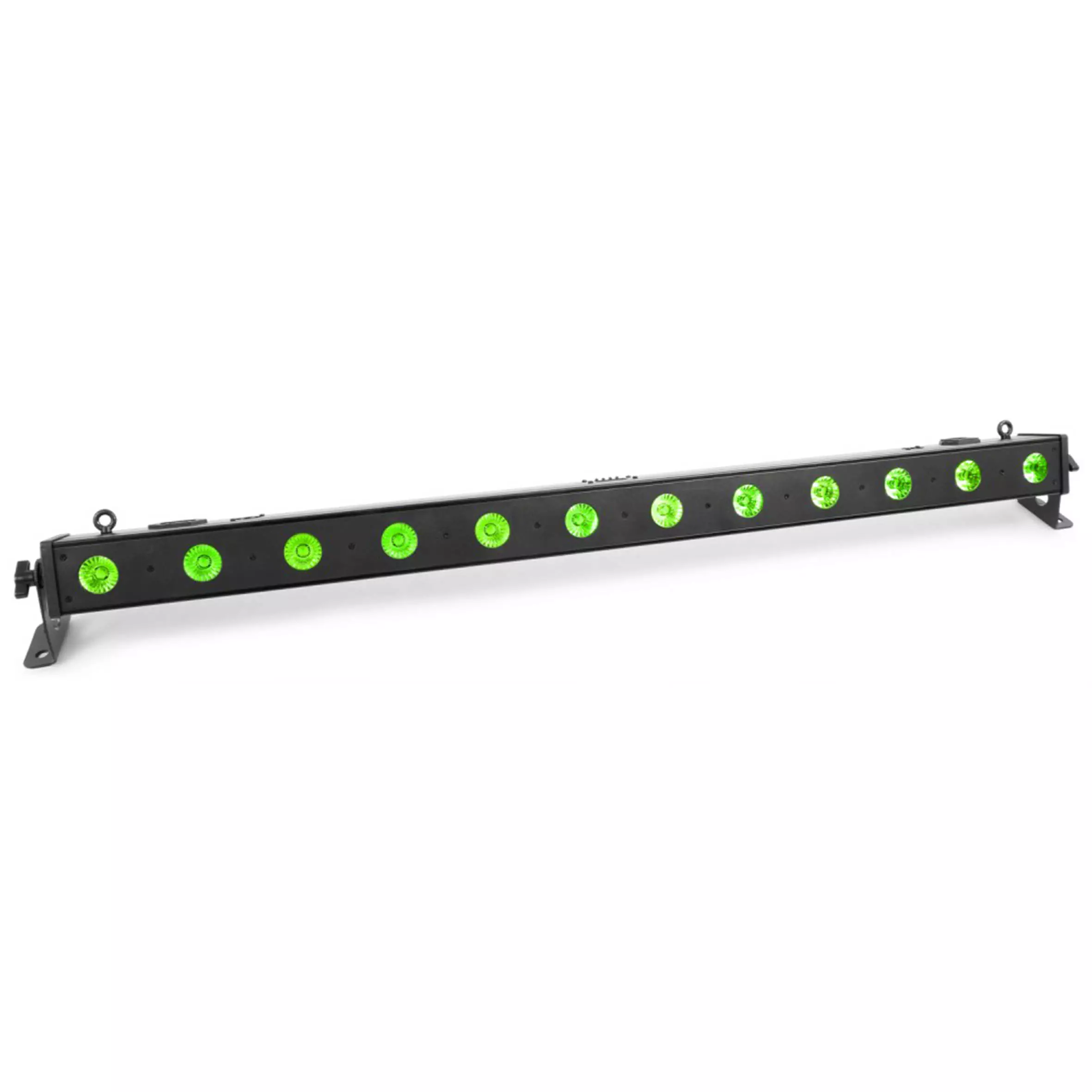 The LCB140 is an LED bar with 12 pieces RGBW LEDs. The LEDs are divided in 1 controllable section. While using the fixture in stand-alone mode there are pre-programmed shows that you can run automatically or sound activated. The extra IEC output enables you to simply link the power of multiple units together into a single socket.