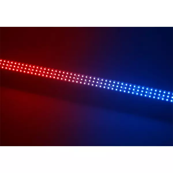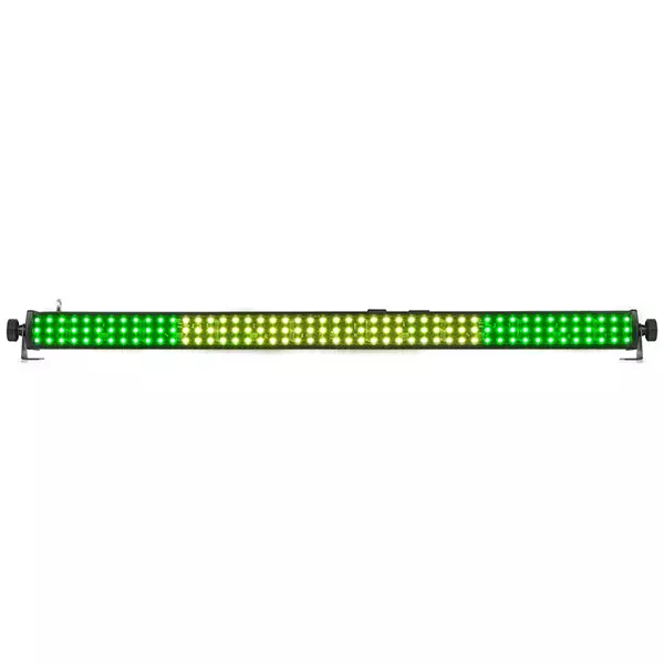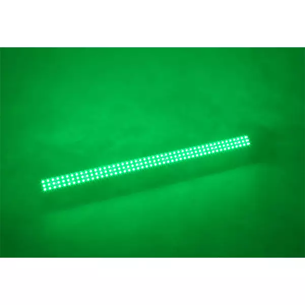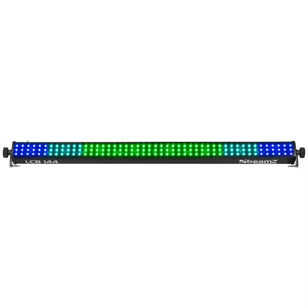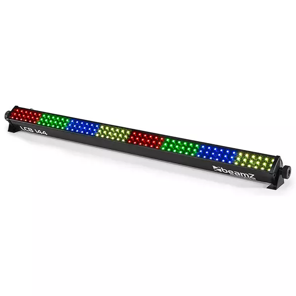 The LCB144 MKII is a LED bar with 144 pieces SMD RGB LEDs. The LEDs are divided in 8 separately controllable sections, with each section having its own RGB colour setting in DMX mode. While using the fixture in stand-alone mode there are 10 pre-programmed shows that you can run automatically or sound activated. The extra IEC output enables you to simply link the power of multiple units together into a single socket.