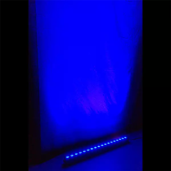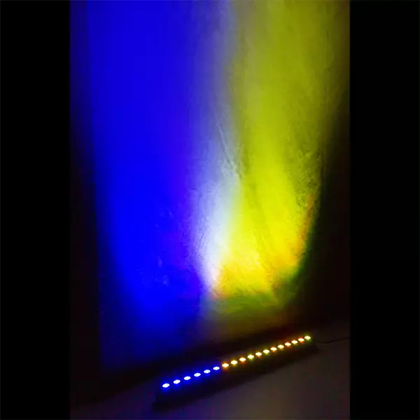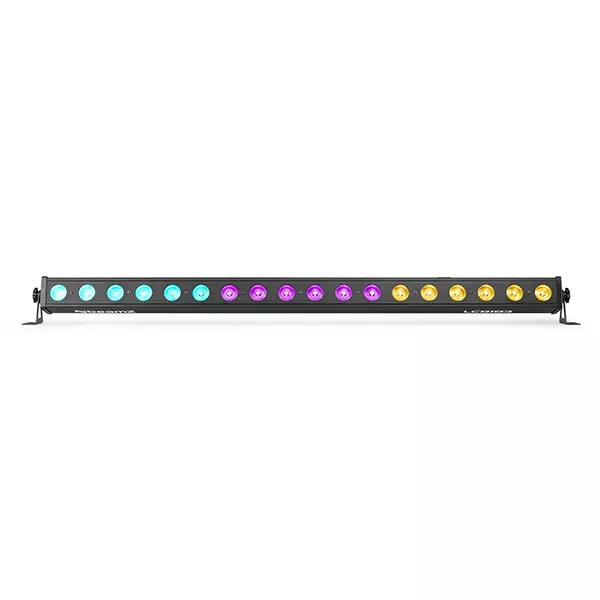 The LCB183 is a LED bar equipped with 18 x 3W pieces RGB LEDs. The LEDs are divided into 3 individually controllable sections of 6 LEDs each. While using the fixture in stand-alone mode there are pre-programmed shows that you can run automatically or sound activated, pick from the pre-set colour macros or create your own mixture of colours in RGB mode. The extra power output enables you to simply link the power of multiple units together into a single socket.