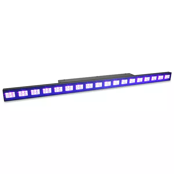 A strong and powerful LED Bar fitted with Ultraviolet LEDs. The LEDs are divided into 6 separately controllable segments giving you the possibility to create runway effects. Equipped with IEC in/out for daisy chaining multiple units together.