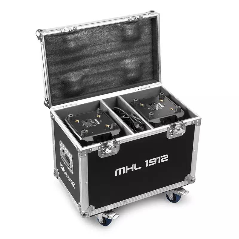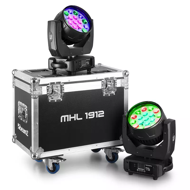 The BeamZ MHL1912 LED moving head kit is a set of powerful wash moving heads designed to light up any stage or dance floor. Each head is powered by 19x 12W RGBW (4-in-1) LEDs with 3 individually controllable sections for creating eye-catching effects and colors. The linear motorized zoom allows you to focus a beam up to 8° or open up to 30° to cover a wider area with ease. Equipped with DMX, built-in auto programs and presets, including a master/slave mode. Perfect for stage shows, productions, events, DJ, Bands, Venues, and more. Supplied as a pair with a custom made heavy-duty road case to protect your fixtures while in transit or storage.