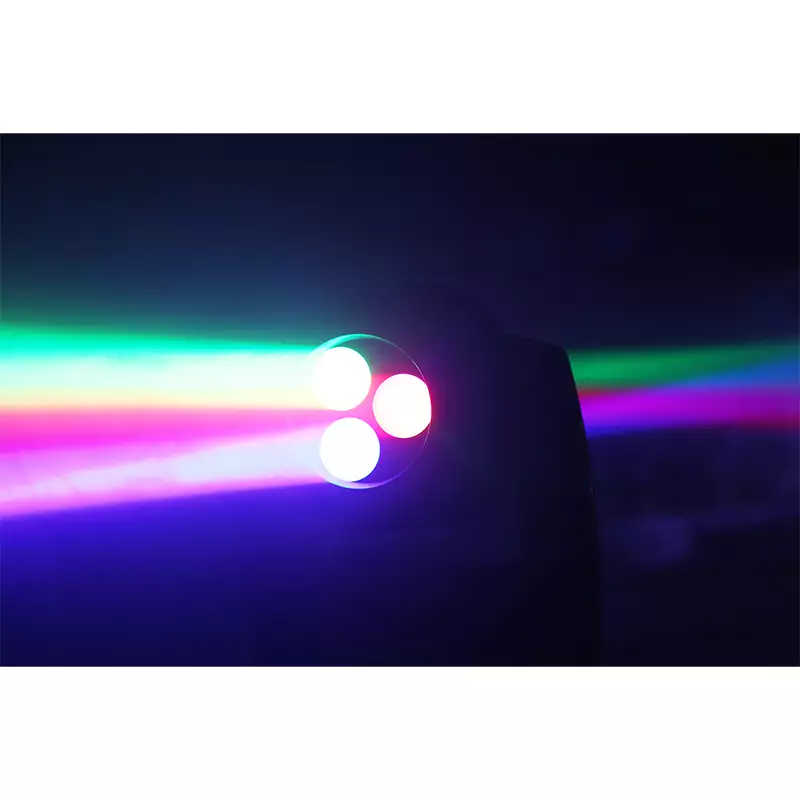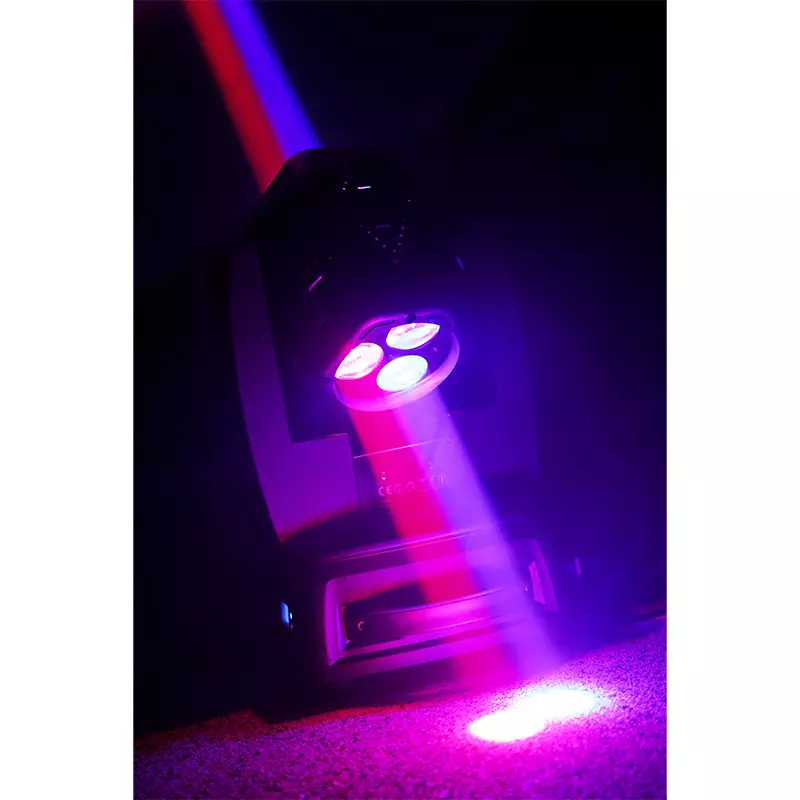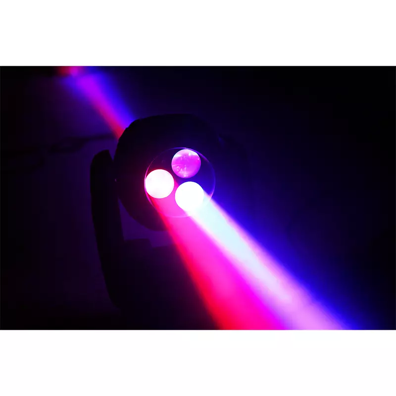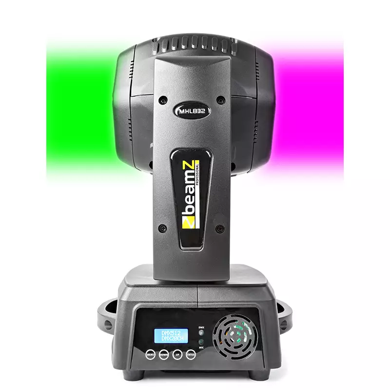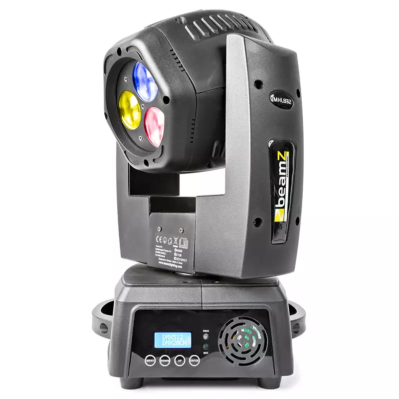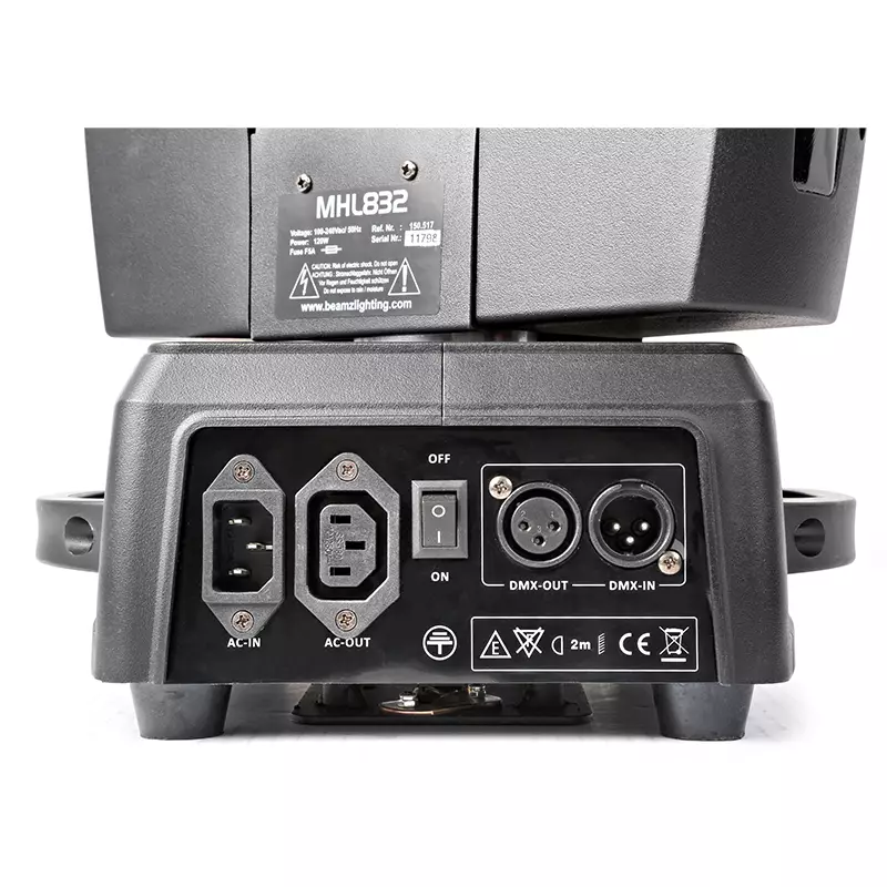 The MHL832 is a moving head with a light source on both sides. Both sides have 3x 8W RGB LEDs that create a stunning beam of 0°. Besides having two light sources the MHL832 also has the possibility to rotate continuously creating a tumbling effect. The moving head can be used in either DMX or stand-alone mode. In the stand-alone mode you can choose between auto or sound controlled mode. In the DMX setting you have the option to choose between 14 or 20 channel mode. 20 Channel mode giving you the possibility to control each side independently to produce a one or two sided show.