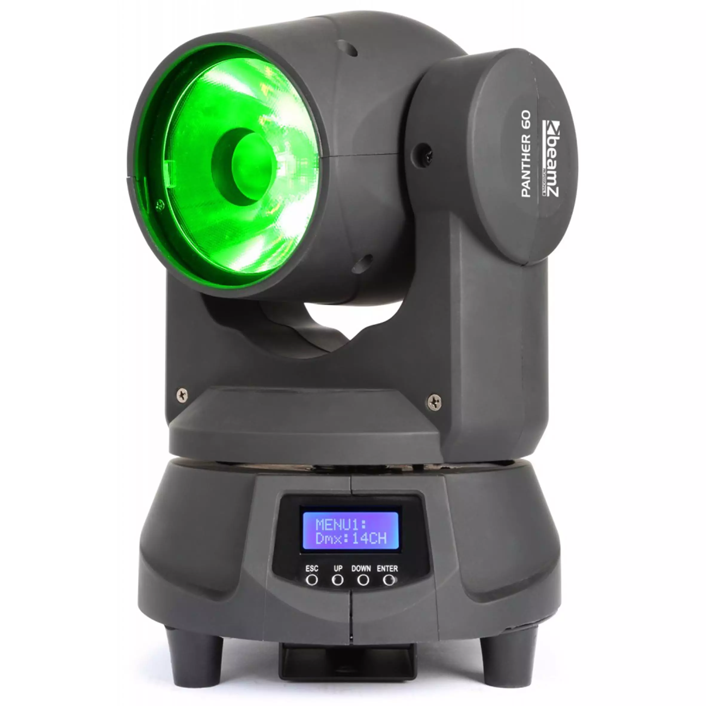 A very compact Panther moving head with bright output. The 60W RGBW LED produces a tight 4° beam in any colour you want. This Panther moving head works both in DMX or stand-alone mode. In stand-alone mode you can choose between an automatic or sound controlled mode that runs on different preset programs. When operating in DMX mode you have complete control with 14 DMX channels. Among it’s features are an adjustable strobe speed, 0-100% dimmer, adjustable X-Y speed and different colour macro’s.