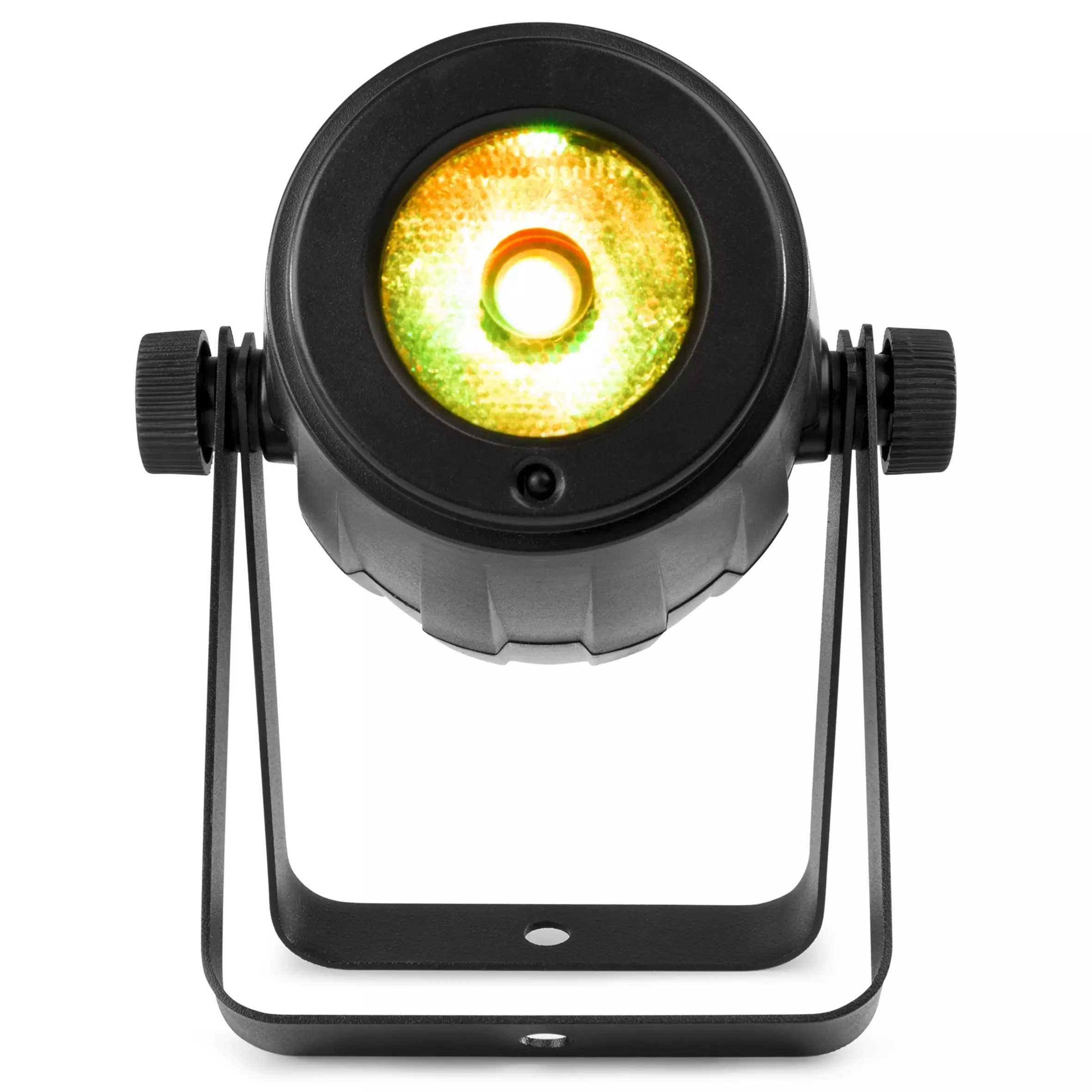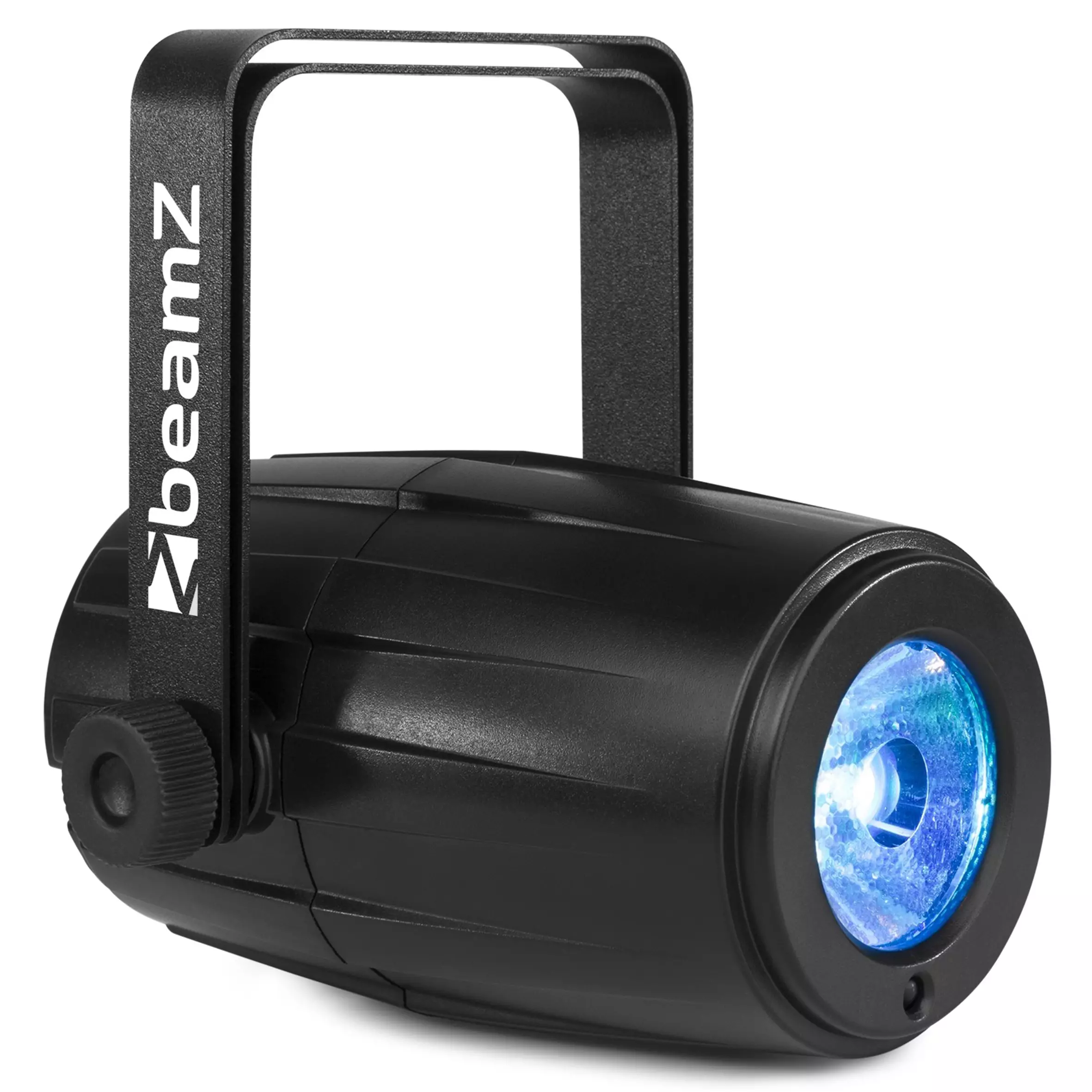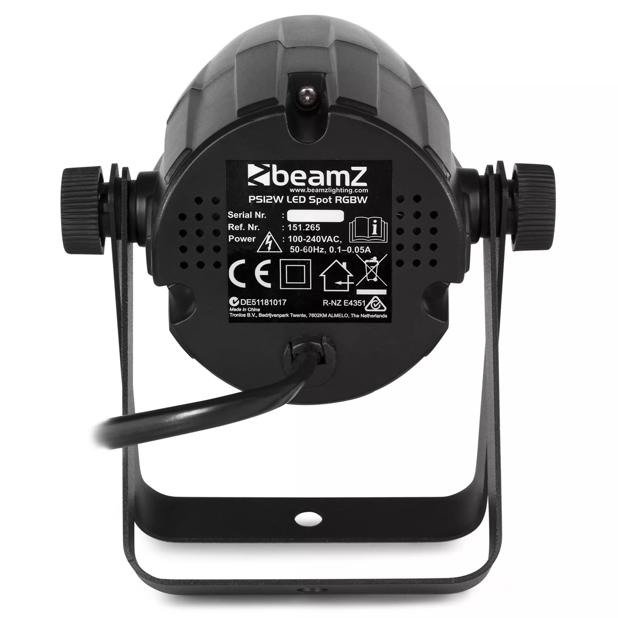 The PS12W is a compact pinspot with a powerful 12 watt 4-in-1 LED. The LED is build up with the colours red, green, blue and white and the light intensity can be adjusted in 9 steps. Because of the narrow spot it’s ideal for aiming at mirror-balls, it can also be used to create mood lighting on a restaurant table, or to spotlight displays in store. The PS12W is equipped with an internal cooling unit, so there is no need for a noisy fan.