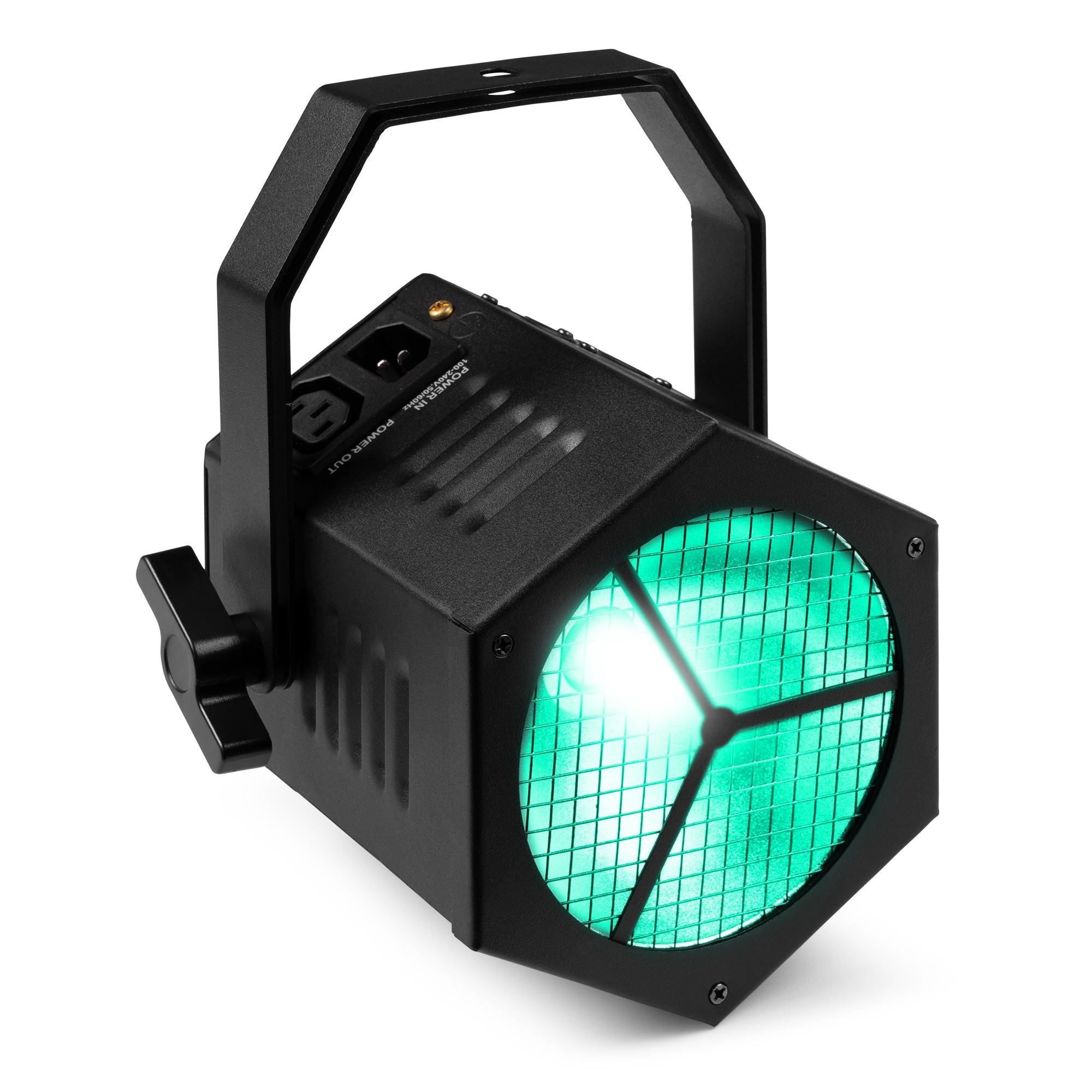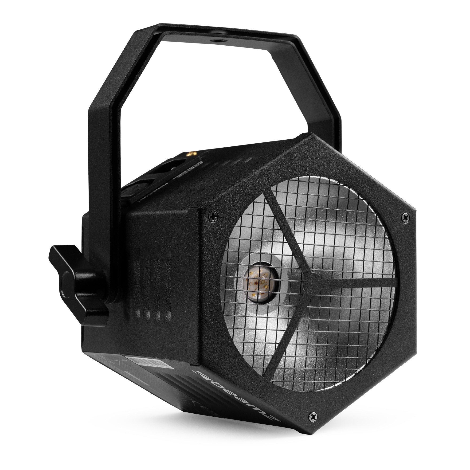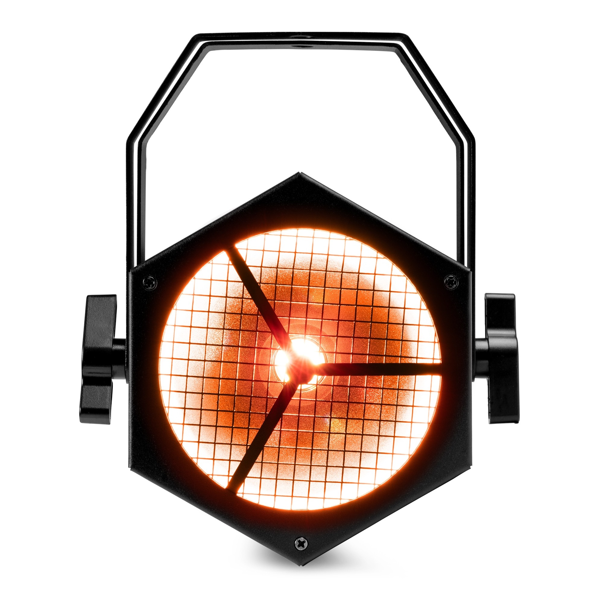 Combine retro trend with modern COB LED technology! The RB40 is a sturdy metal PAR equipped with a high power 40W COB (chip-on-board) LED and creates a 75° Beam Angle. The fixture offers a magnitude of static RGBW colours and colour mixing. Features built-in automated and sound-activated programs, strobe and electronic dimming for use on the fly, or create your own looks using the DMX mode. Possibility of linking several units. This COB retro effect creates vibrant lighting with several spectacular visual effects.