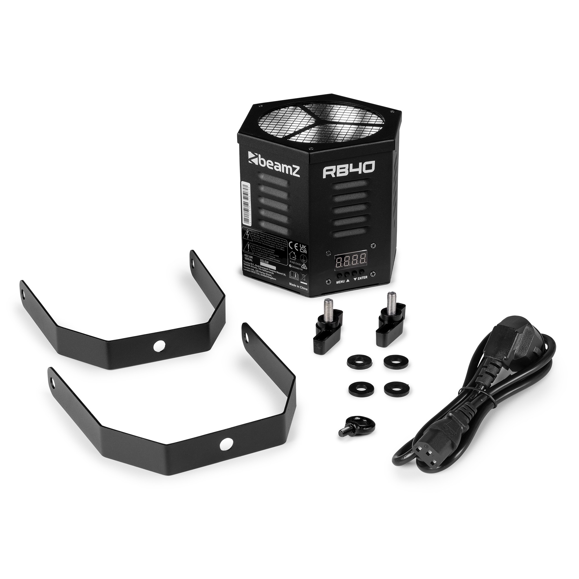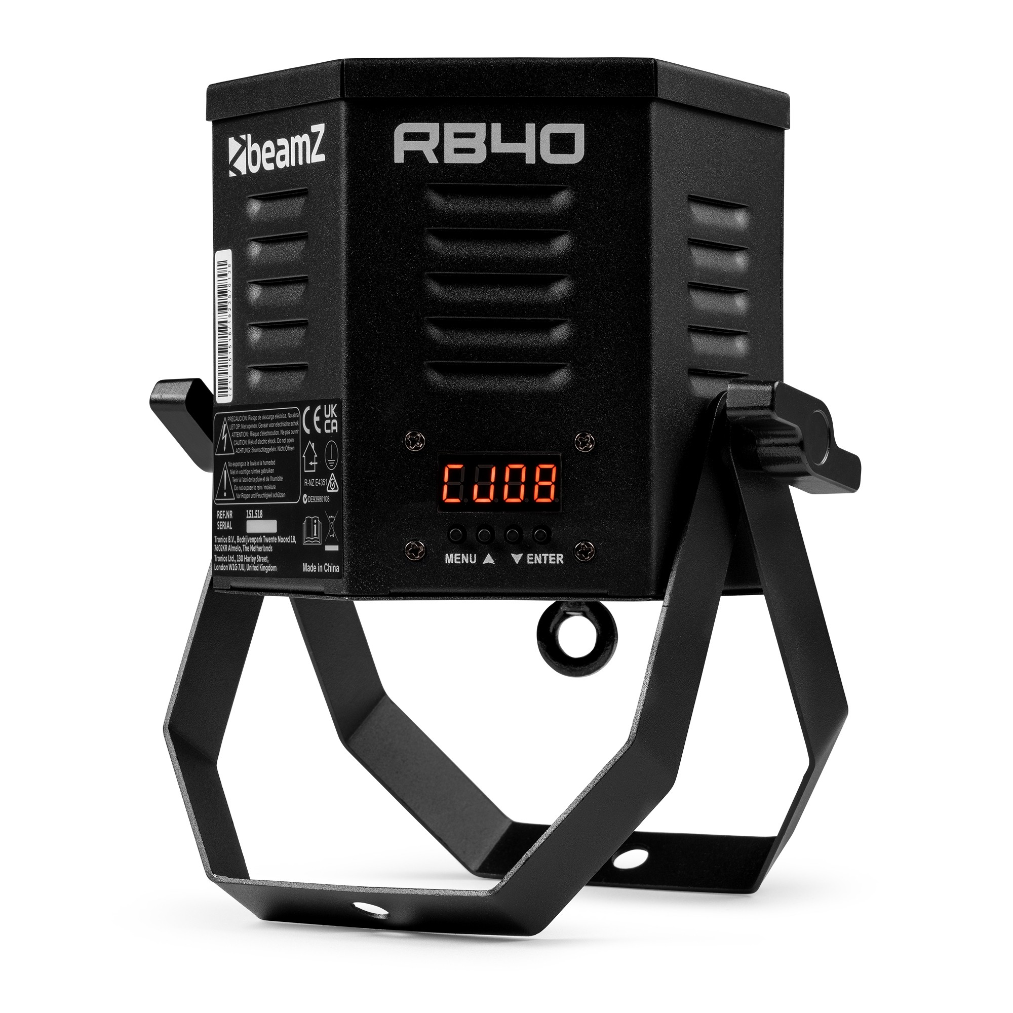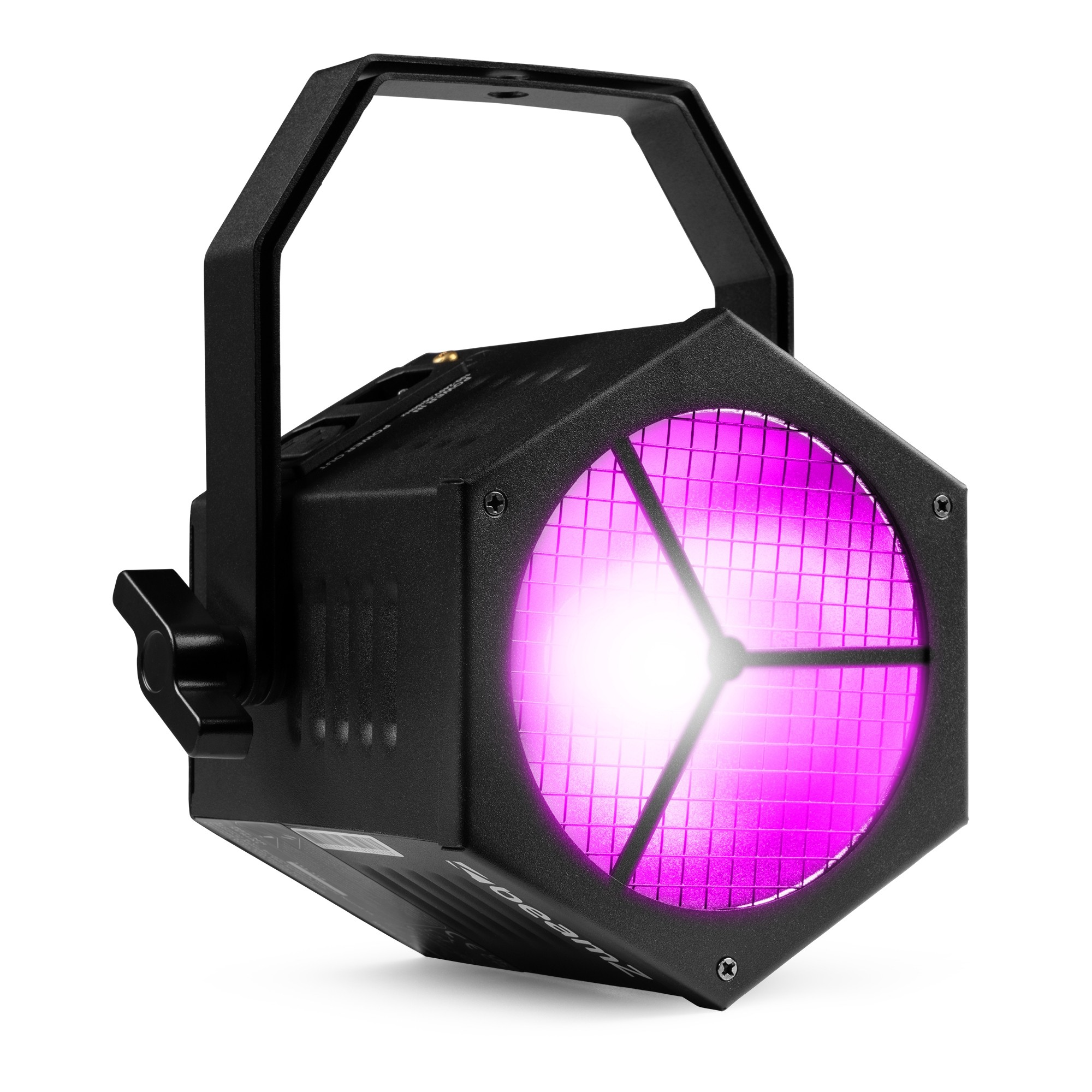 Combine retro trend with modern COB LED technology! The RB40 is a sturdy metal PAR equipped with a high power 40W COB (chip-on-board) LED and creates a 75° Beam Angle. The fixture offers a magnitude of static RGBW colours and colour mixing. Features built-in automated and sound-activated programs, strobe and electronic dimming for use on the fly, or create your own looks using the DMX mode. Possibility of linking several units. This COB retro effect creates vibrant lighting with several spectacular visual effects.