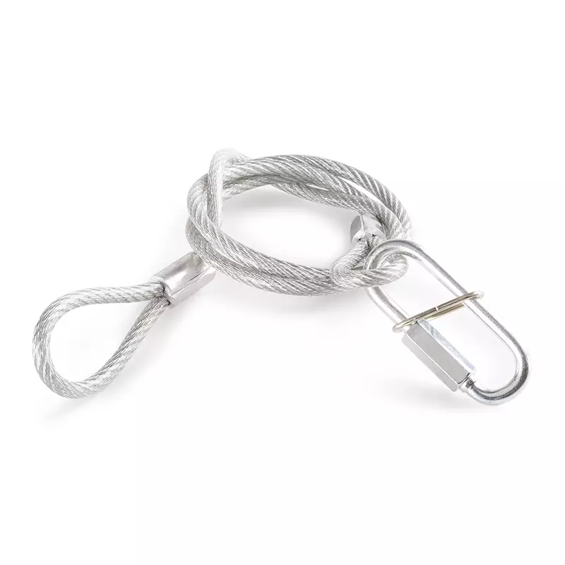 95cmx5mm Steel cable for added security when effects, cans and spots are mounted to a lighting stand. Maximum load capacity is 65kgs.
