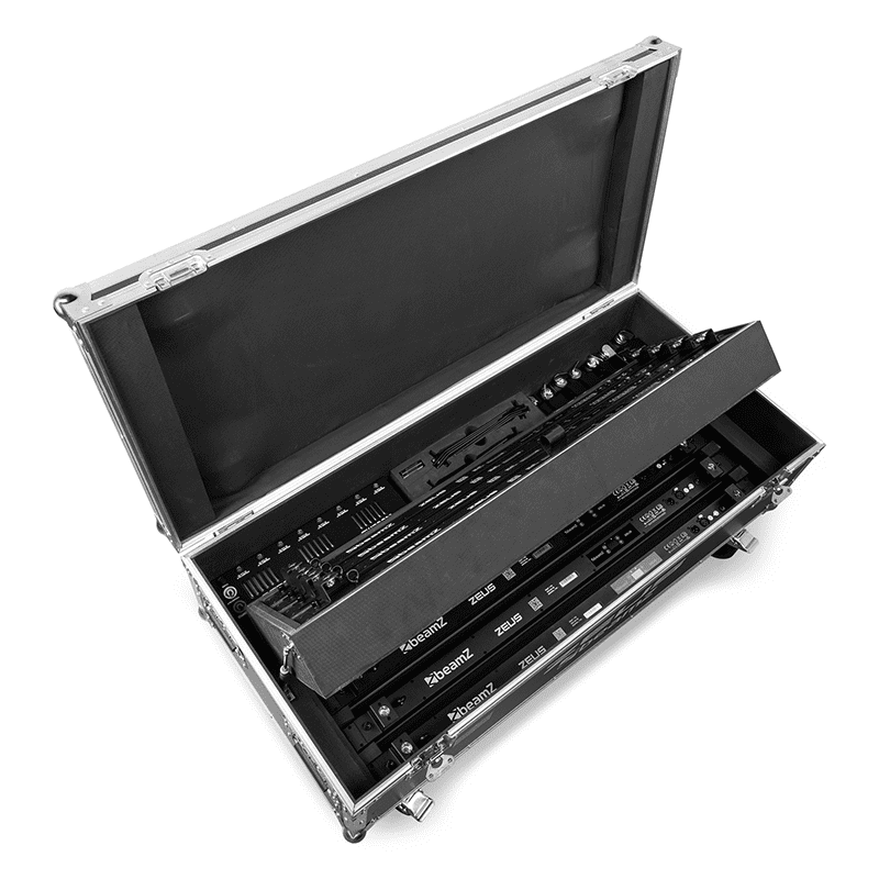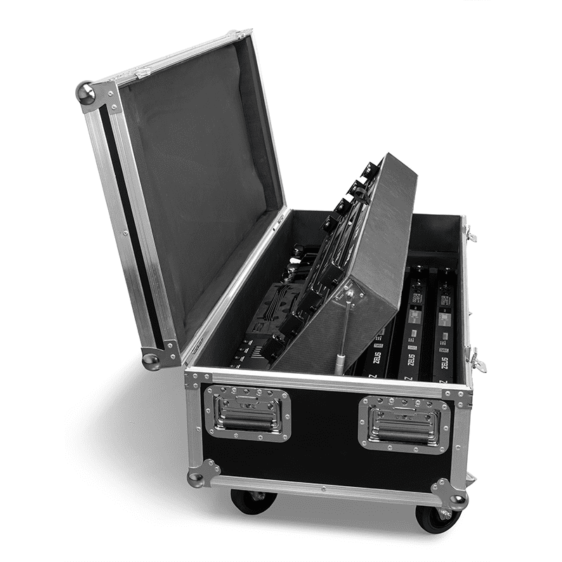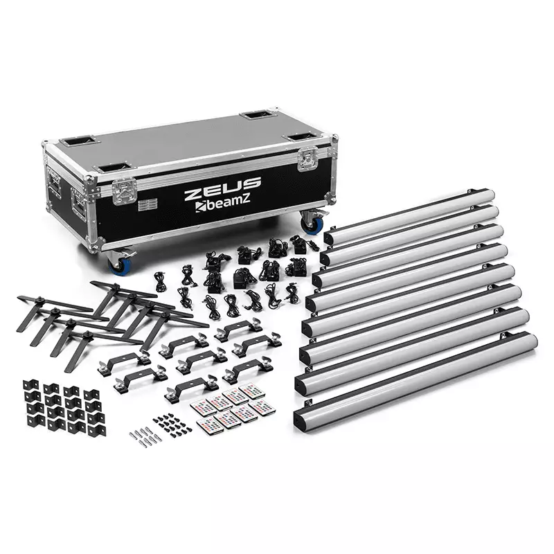 The Zeus Tube Bar Kit comes complete with eight Zeus LED Tube Bars and all the essential accessories you need for your next shoot or event. These are all stored in a durable, protective flightcase with charging system that also comes equipped with wheels and handles for easy transport.