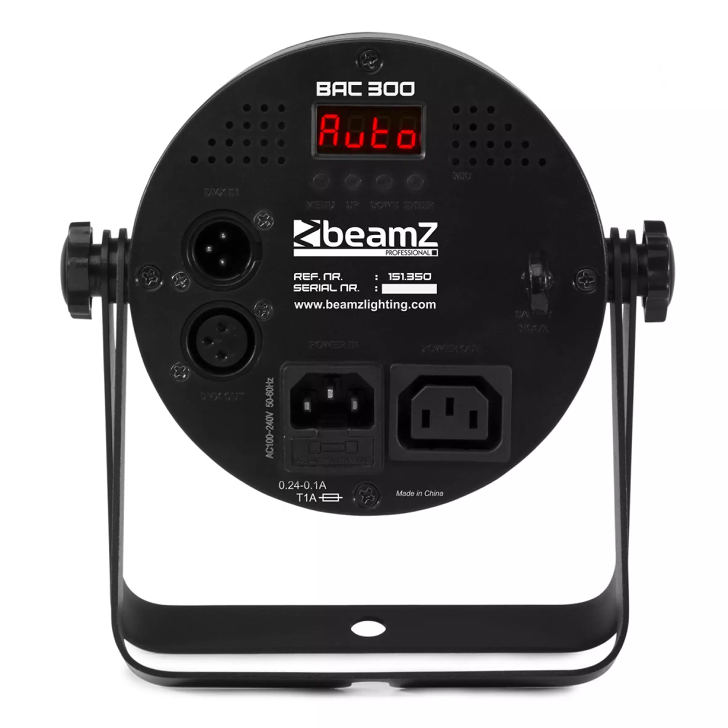 The BeamZ BAC300 is a slimline Aluminium LED ProPar, created by the latest LED technology. It includes 6x 8W 4-in-1 LEDs (RGBW). Highly efficient, natural convection cooling thanks to the attractive cast aluminium housing with heat sink design. There are no internal cooling fans in these PAR cans, which mean absolutely zero noise. The 4 push button LED menu allows for easy access to the functions including DMX, master/slave, sound activation and the stand alone function. Equipped with IEC in/out and XLR 3-pin in/out for daisy chaining multiple units together.