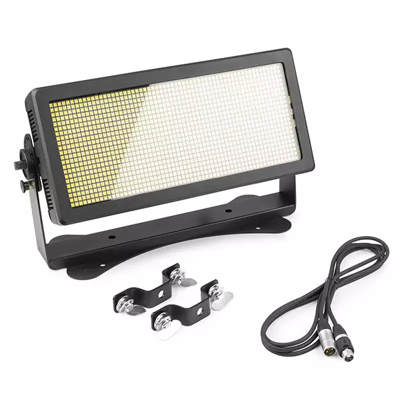 The BS1500W is a Stroboscope and a Blinder in one device that features 1320x SMD Cool White LEDs. This intense white LED strobe provides blinding output that will dazzle audiences. Constructed of strong die cast aluminium, the BS1500W is built to withstand the harshest touring environment. With this strobe light you can achieve an amazing slow motion effect for your stage, concert, DJ night, party and many other events.