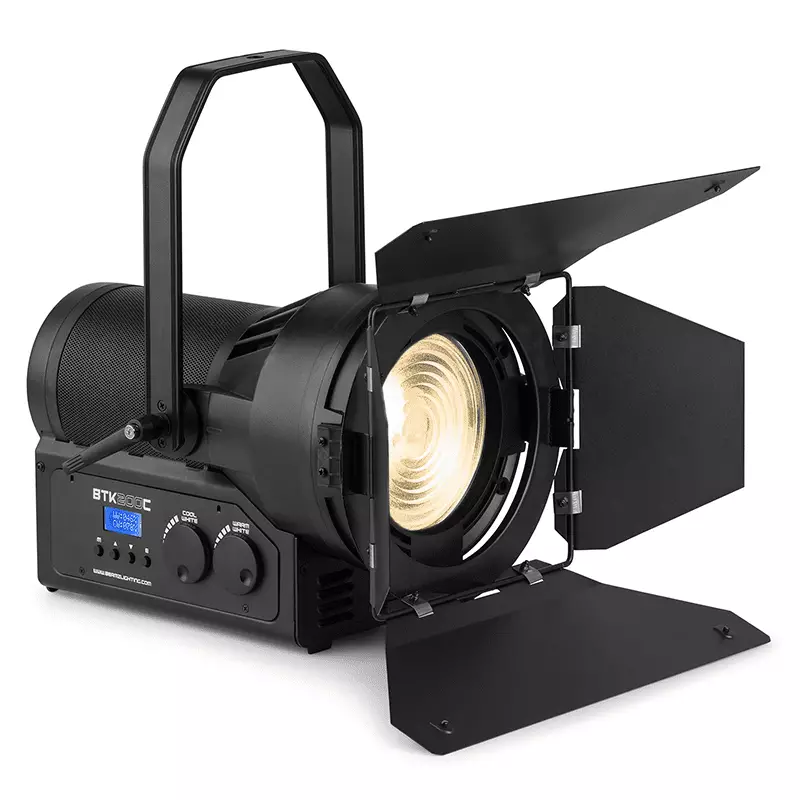 The BTK200C is a compact and easy-to-maintain LED Fresnel spotlight with a versatile 15°-40° beam angle. Utilizing a two-stage focusing optical system, this fixture creates a soft and uniformly illuminated field of cool or warm white light with a high Color Rendering Index (CRI). Crafted from durable die-cast aluminum, the stylishly designed BTK200C combines the functionality of traditional tungsten fixtures in combination with optimized color correction for video cameras. P-Con in/out and 3-pin DMX in/out connections are standard equipment on this Fresnel, ensuring compatibility with your existing equipment and a simple installation process. Ideal for TV studios, conference rooms, theaters, houses of worship, and more, the BTK200C is designed to meet your lighting needs with precision and style.