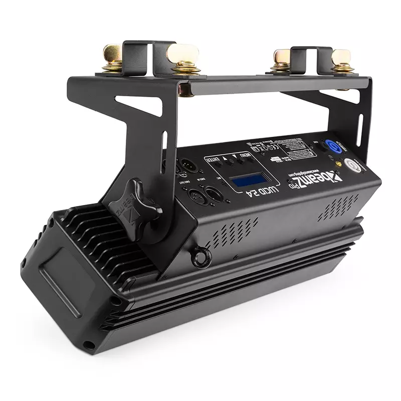 The LUCID is equipped with 4 or 8 high power COB LEDs that can be used for either wash effects or as a pixel controlled bar. With the latest COB technology it’s possible to create flawless RGBW colour mixing. The LUCID can either be used in stand-alone mode and run its preset programs in a certain speed or follows the music, thanks to the built-in microphone. But for full control you can also use a DMX controller to program this light effect into your shows. The LUCID can be placed on the floor by turning the bracket upside down, making it ideal for both fixed installations and rental.