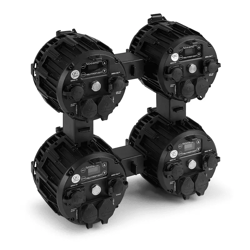 The beamZ Neutron-Dot is a versatile LED hybrid fixture that seamlessly combines style with creativity. This dynamic lighting solution transcends traditional boundaries, making it ideal for a wide range of applications. From serving as an audience blinder and strobe light to functioning as a creative LED pixel mapping surface, eye candy effect light and stage wash, the Neutron-Dot delivers it all in a single compact design.