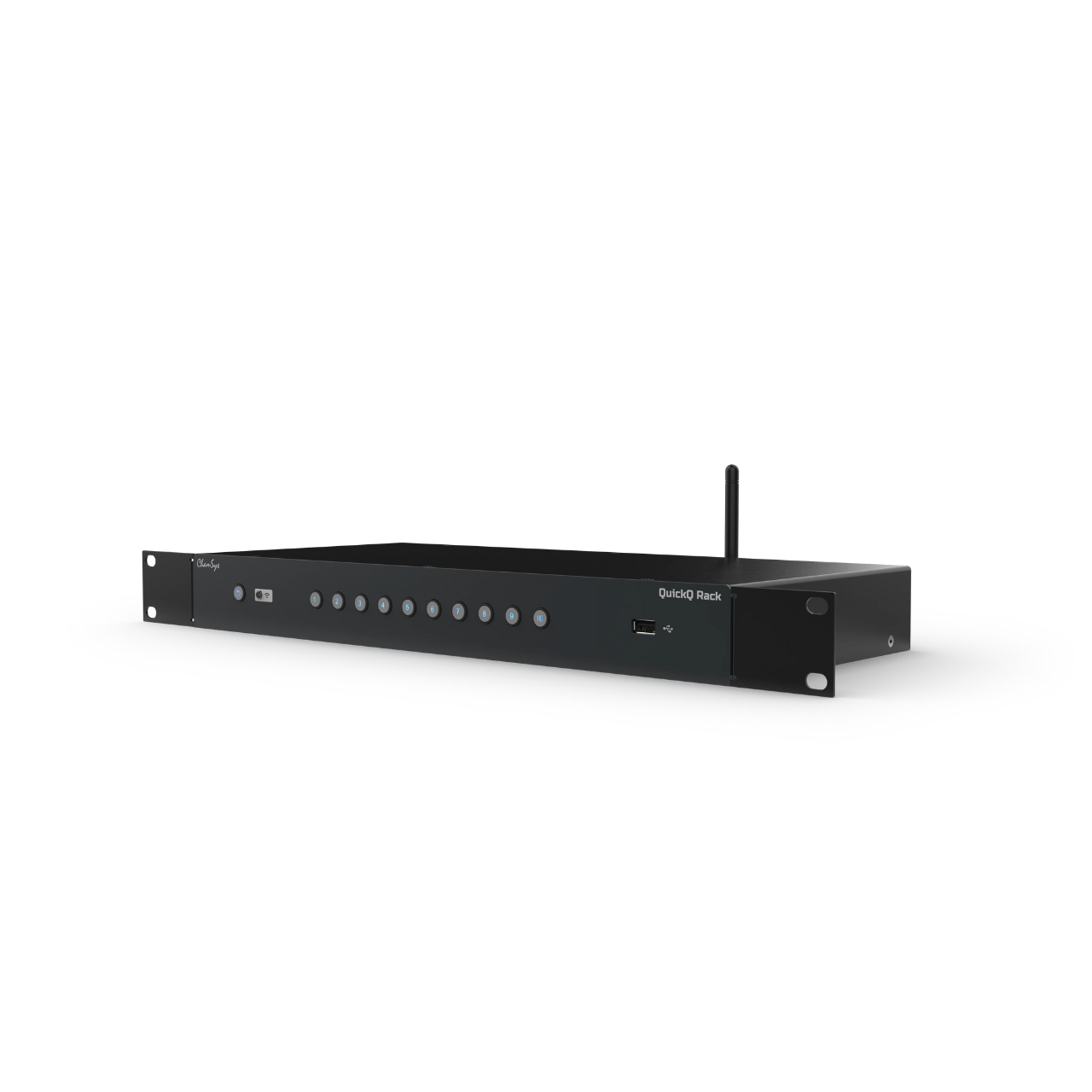 QuickQ Rack is a small rack mountable version of the QuickQ console designed for installations. It features the same operating system as QuickQ series consoles, but is designed to operate as a remote system without physical user control.